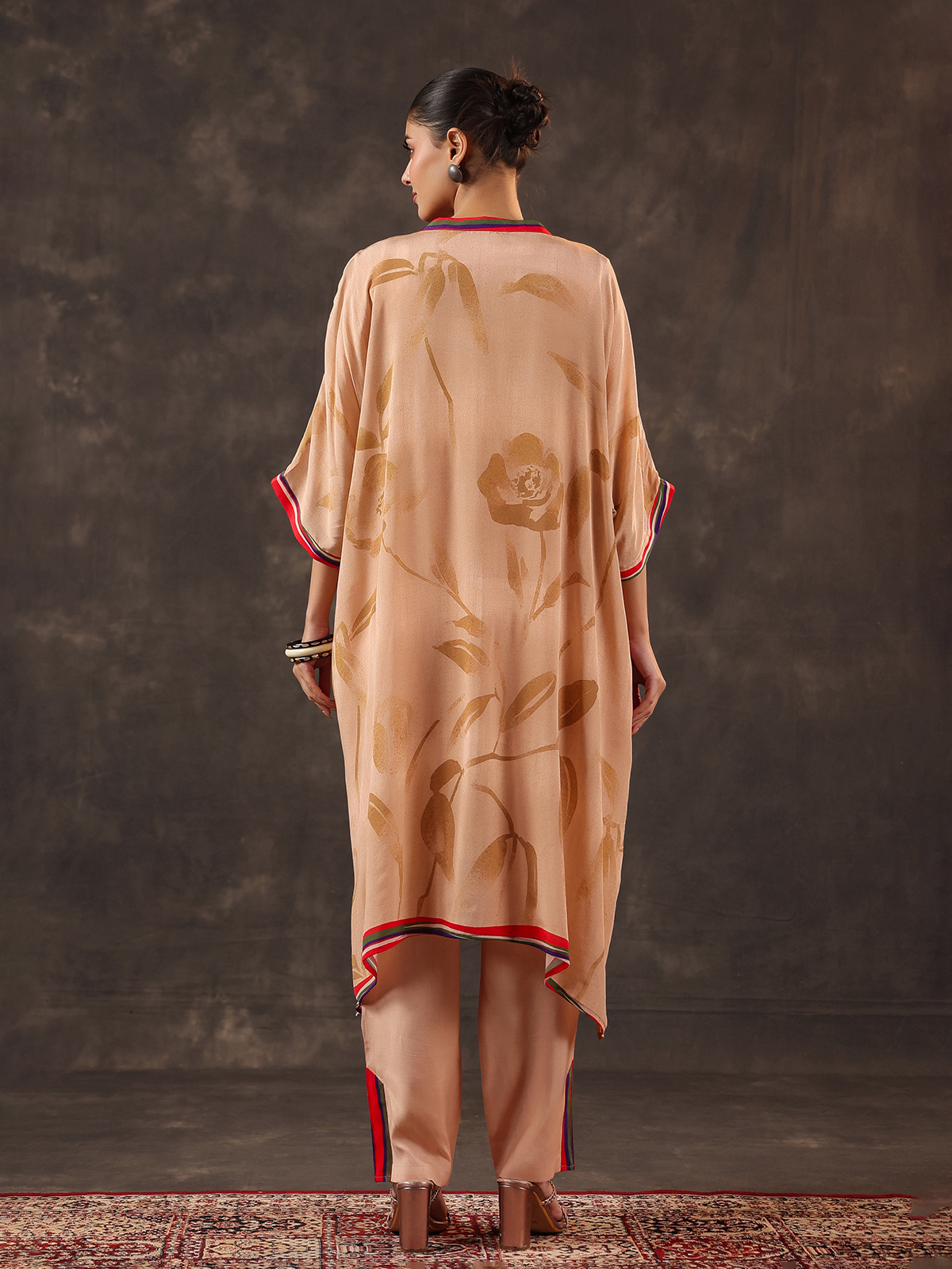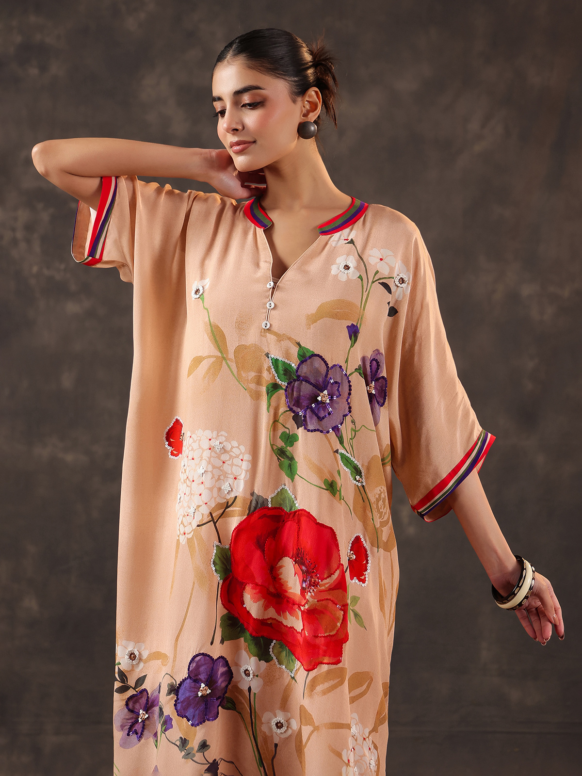 Cream Viscose Crepe Floral Printed Designer Kurti Set
