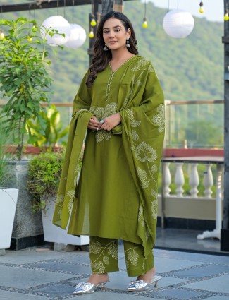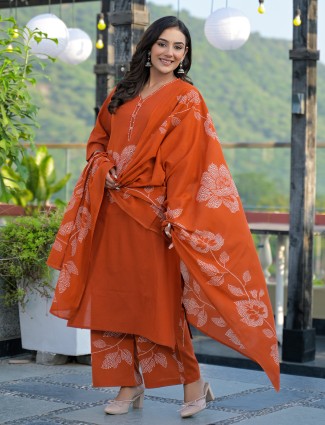 This maroon cotton silk kurti set presents a tasteful printed pattern paired with a flowing dupatta. The V-neckline and quarter sleeves offer effortless elegance. Teamed with a comfortable palazzo, it becomes a stylish and balanced choice for festive gatherings.