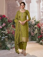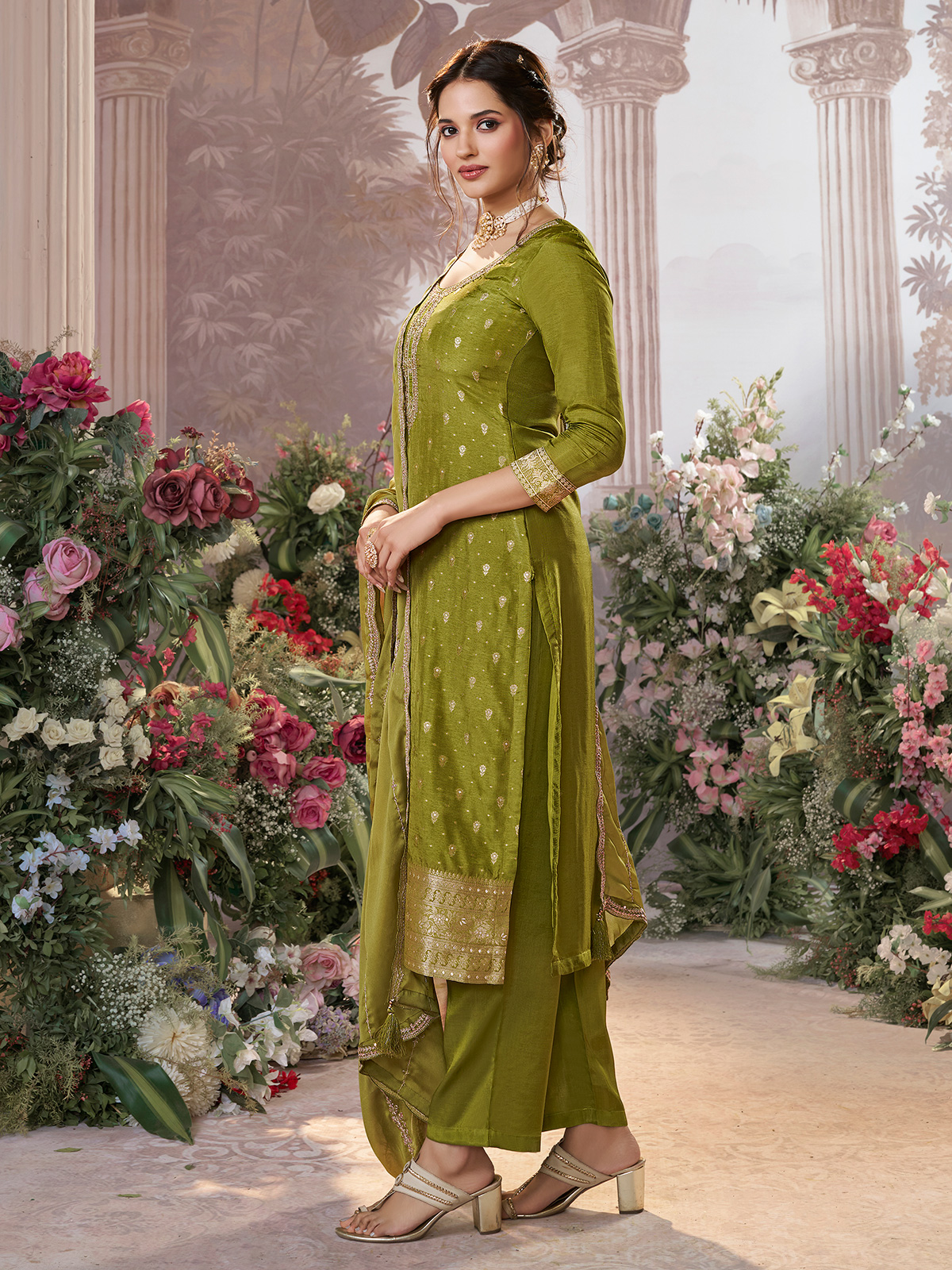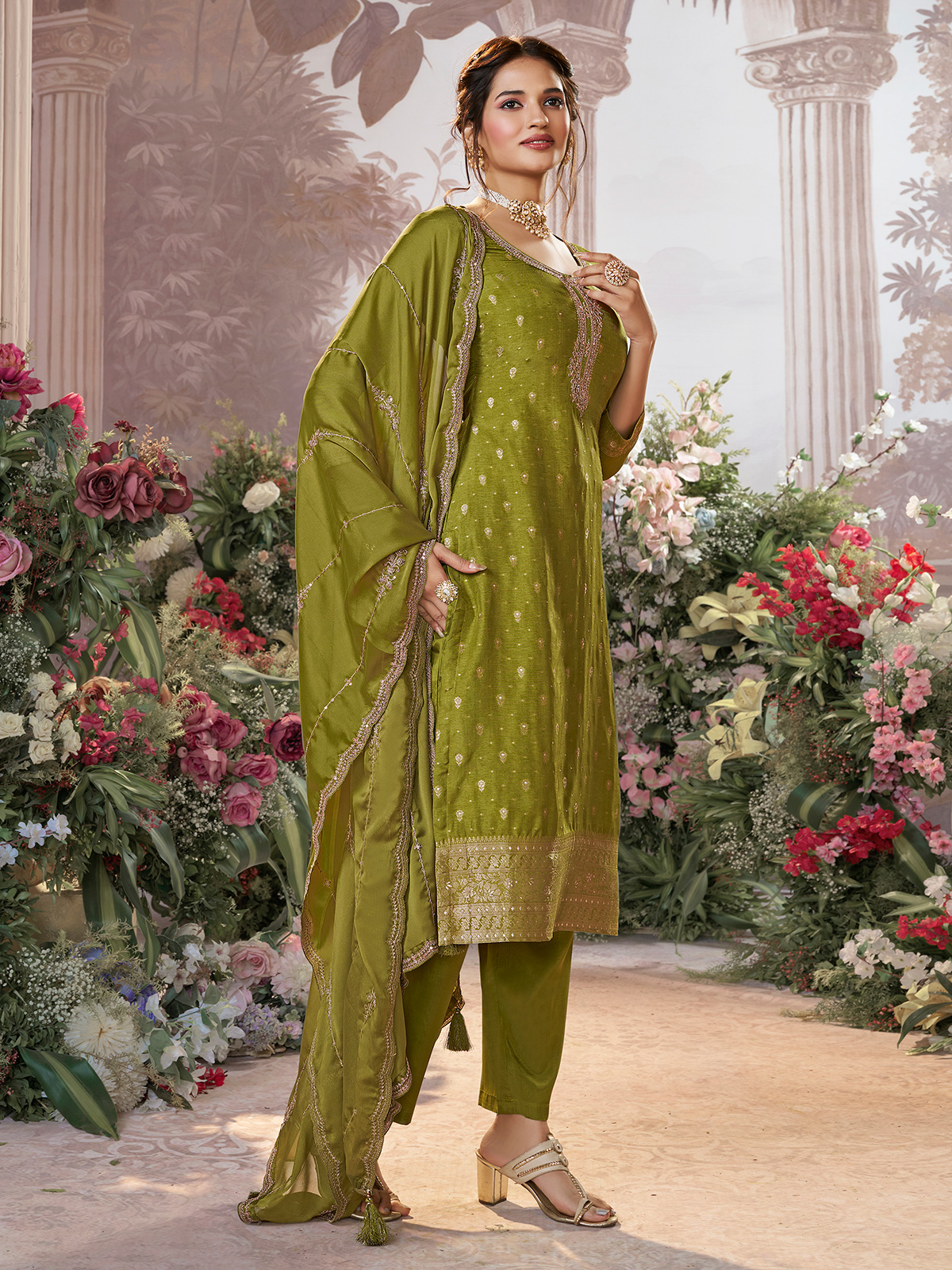 Mehendi Green Silk Salwar Suit For Mehendi Celebrations