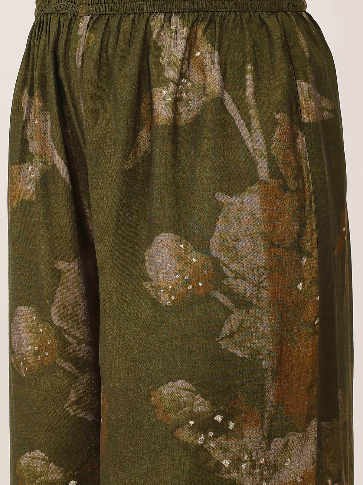 Mehendi Olive Cotton Silk Printed Kurti Palazzo Set