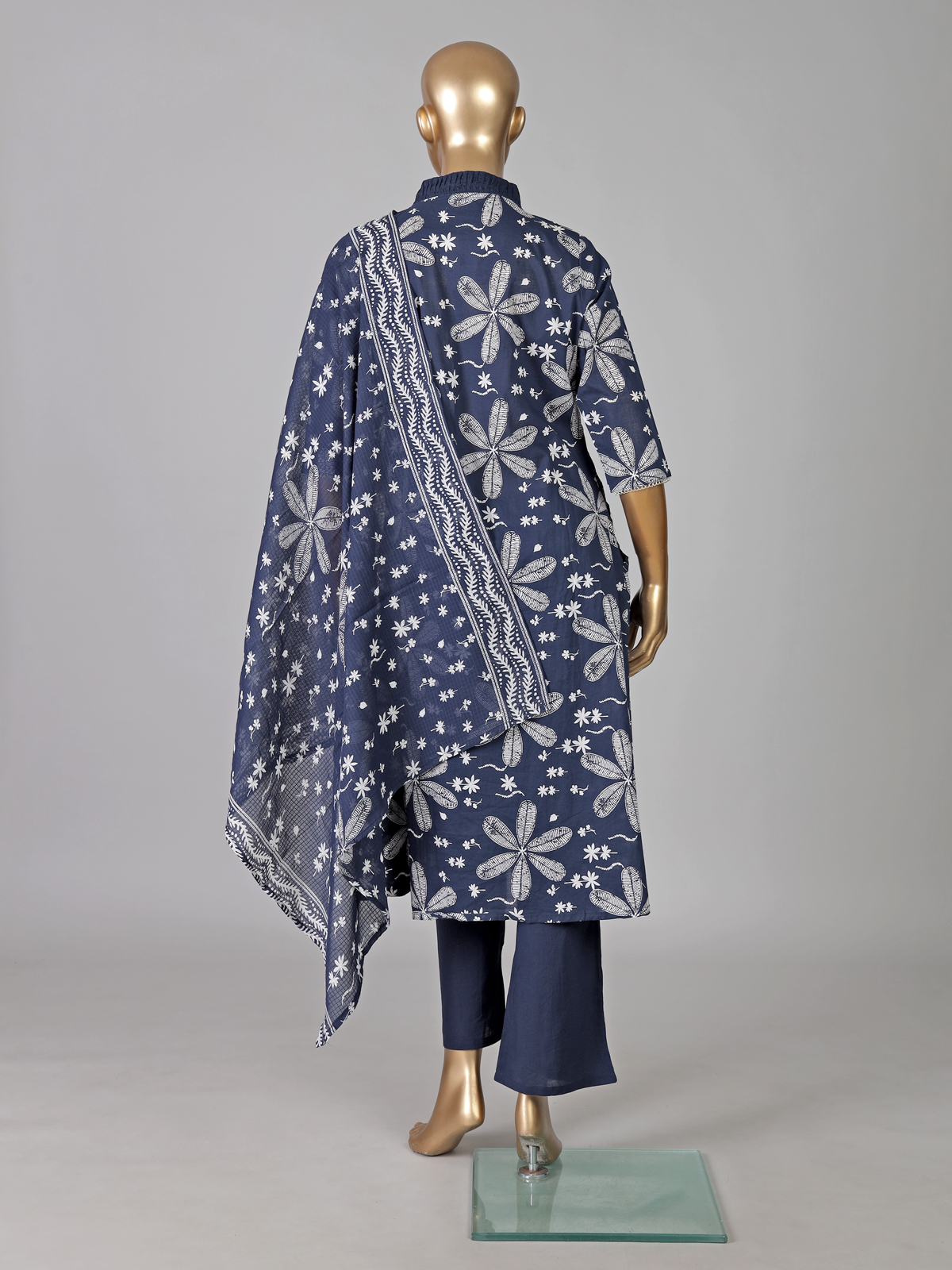 Navy Cotton Silk Floral Printed Casual Festive Kurti Set
