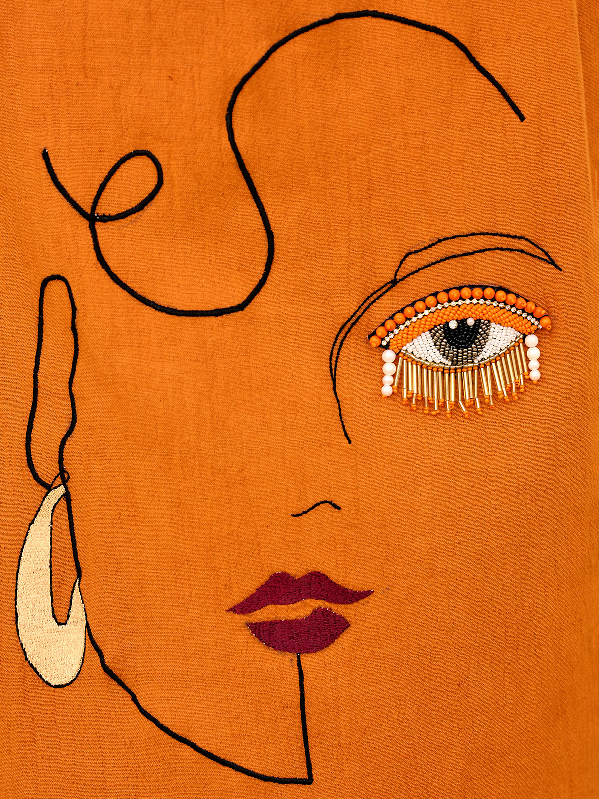 This orange cotton silk suit captures warmth and elegance in one silhouette. Featuring a V neck and quarter sleeves, its enriched with bead, cutdana, and stone embellishments that subtly shine through every festive gathering or casual celebration.