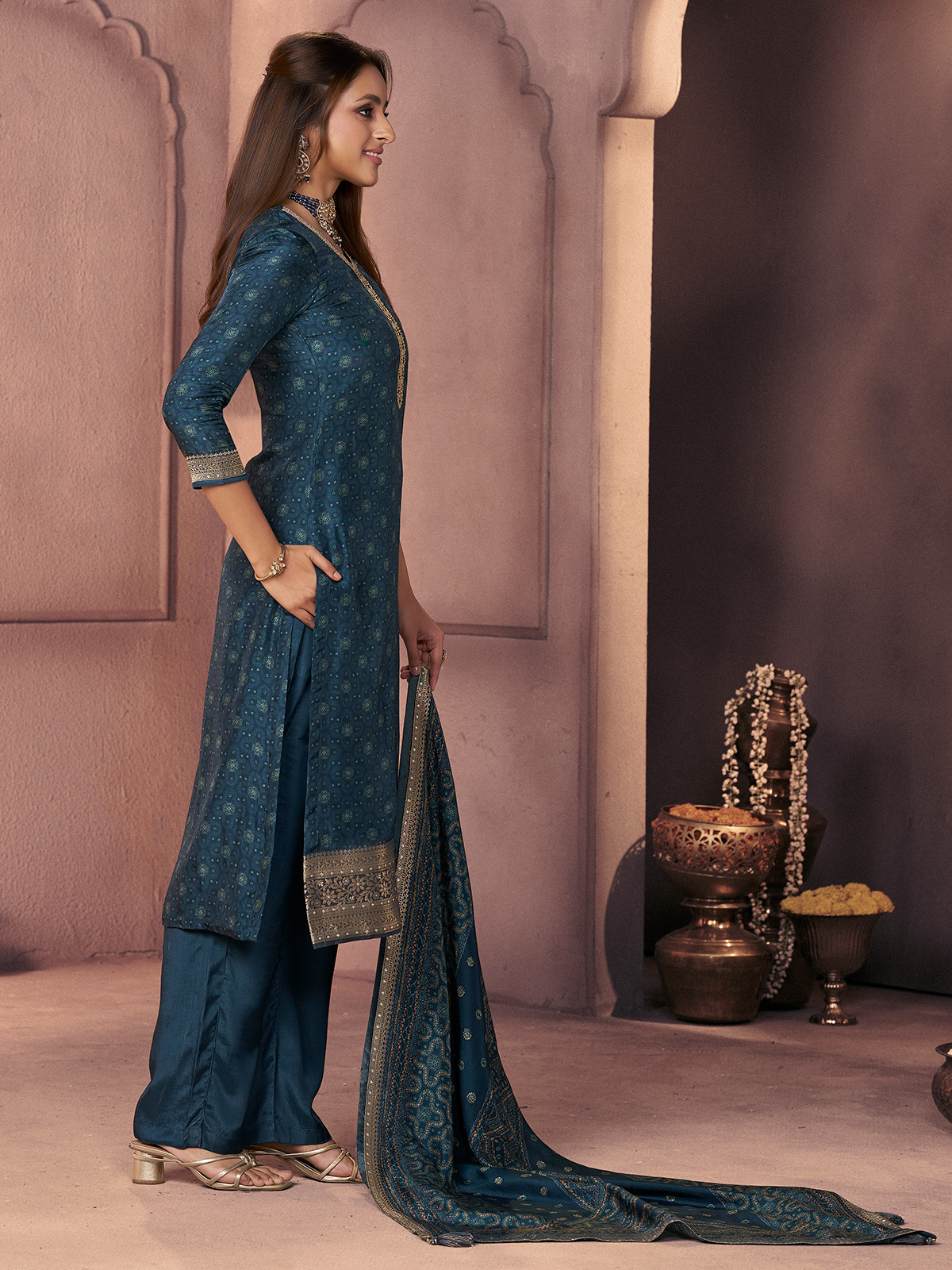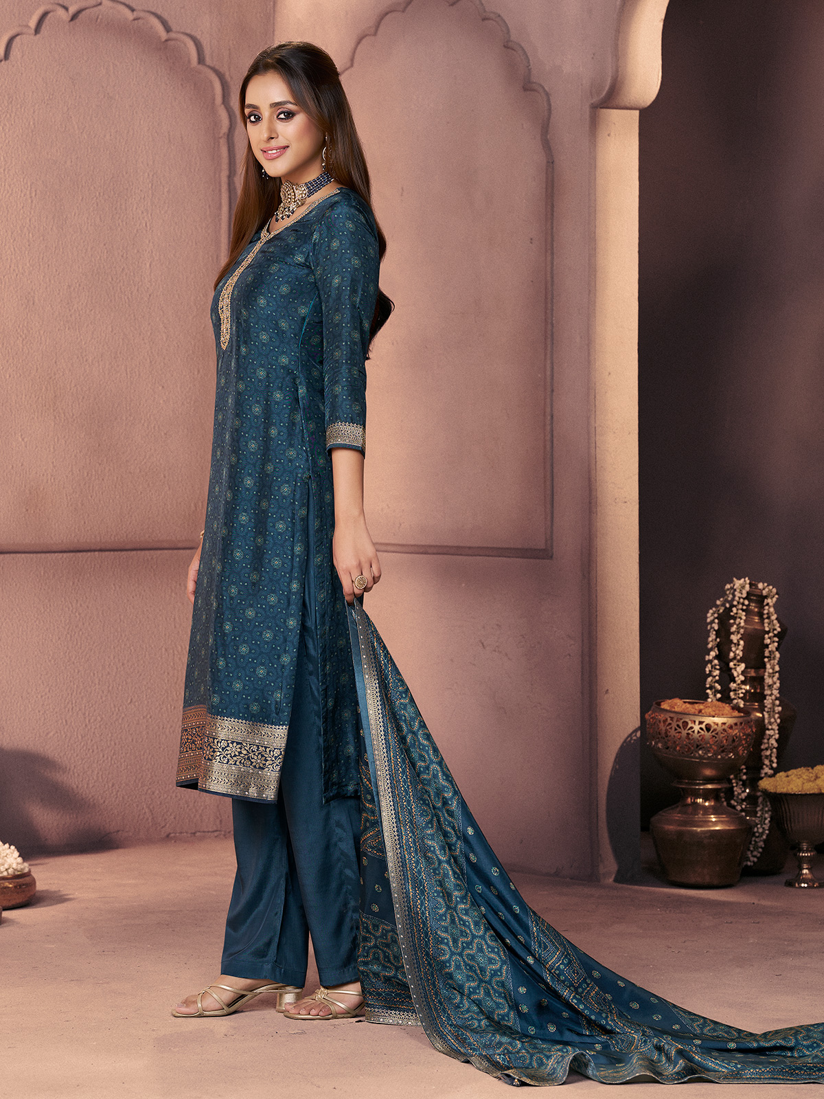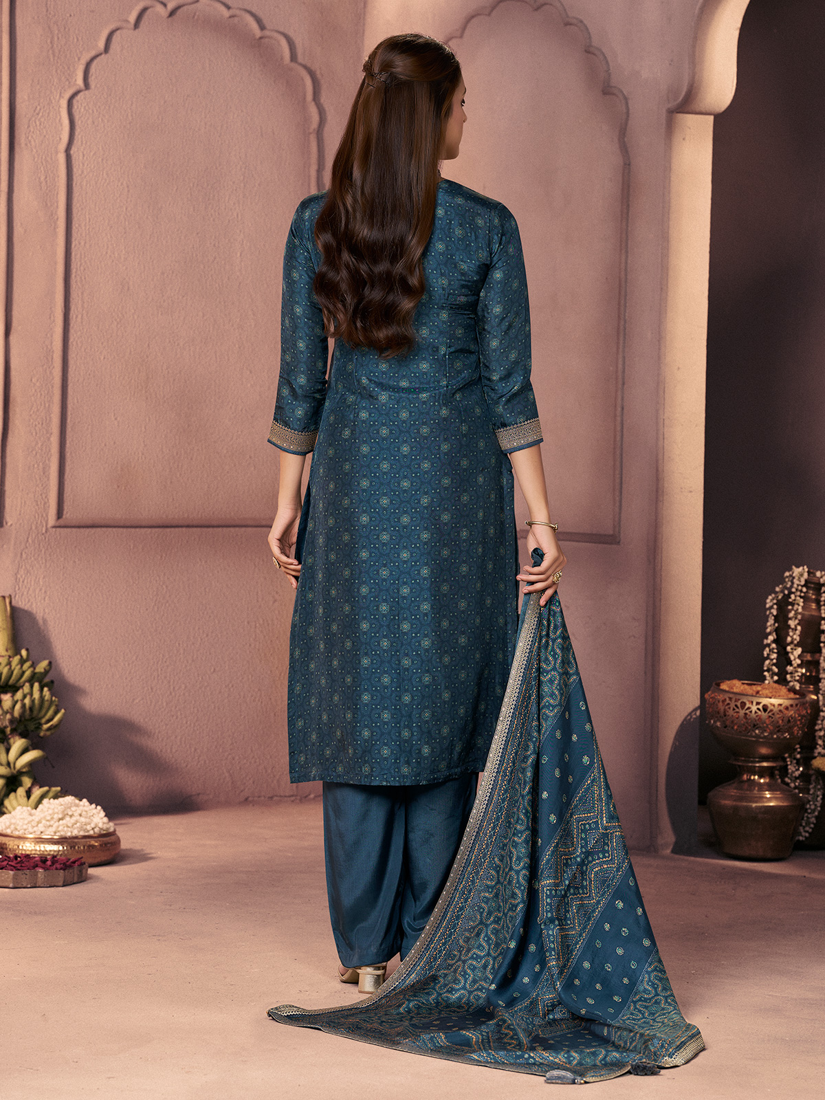 Rama Blue Silk Festive Wear Kurti Set Wth Dupatta