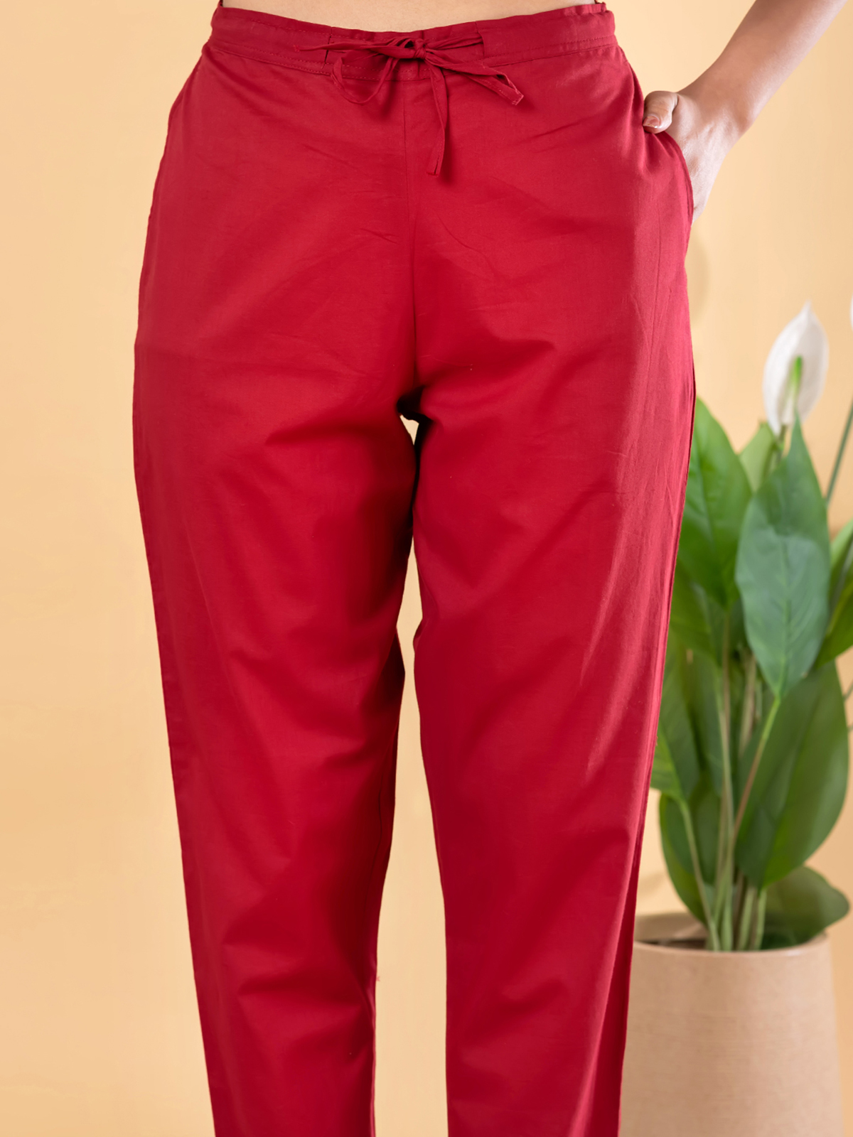 Red Cotton Silk Straight Cut Festive Suit Set