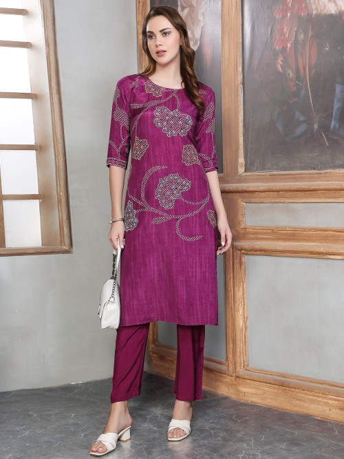 Wine Color Silk Kurti Set For Festival Season