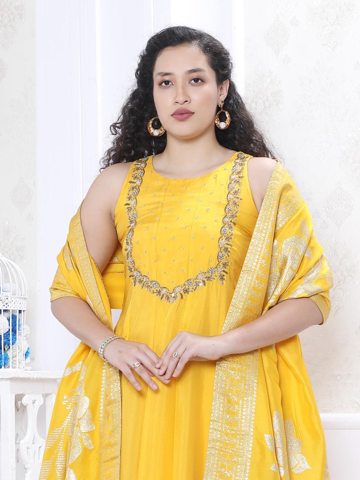 Yellow Silk Embellished Kurti Palazzo Festive Set
