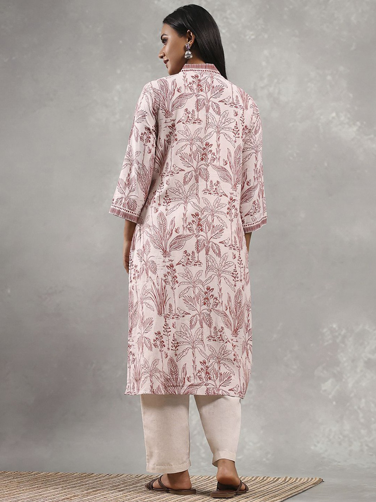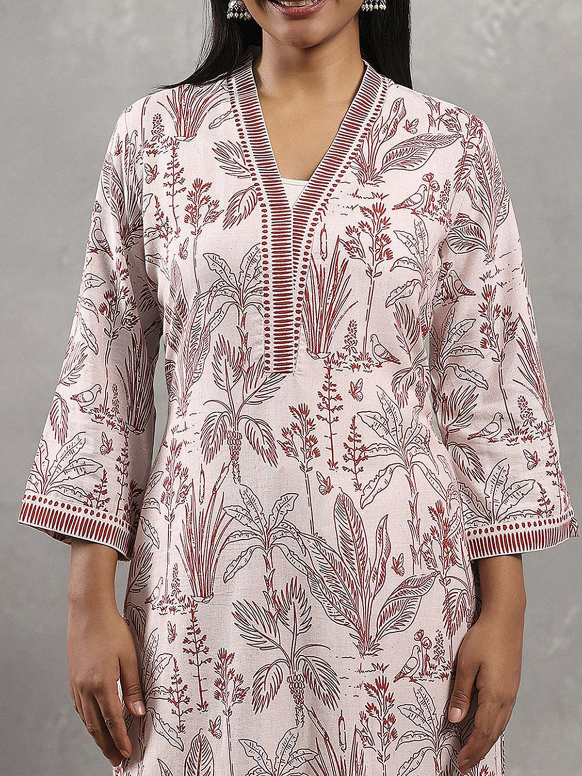 Beige Cotton Kurti With Printed Pattern For Everyday Elegance