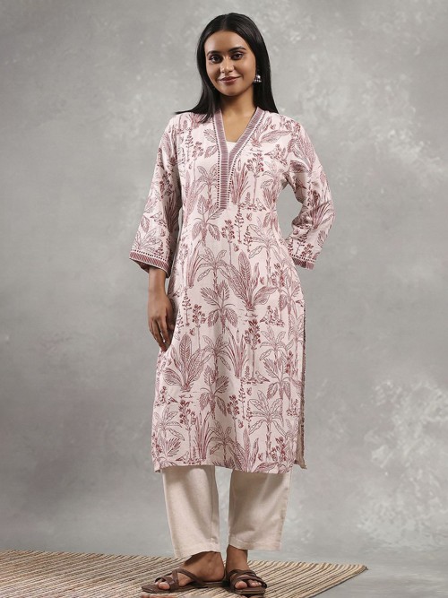 Infuse charm into your daily wear with this beige printed cotton kurti. Styled with a refined V neckline and quarter sleeves, it offers effortless sophistication and comfort. Suitable for workdays, family gatherings, or subtle festive dressing, it enhances your everyday look with understated grace.