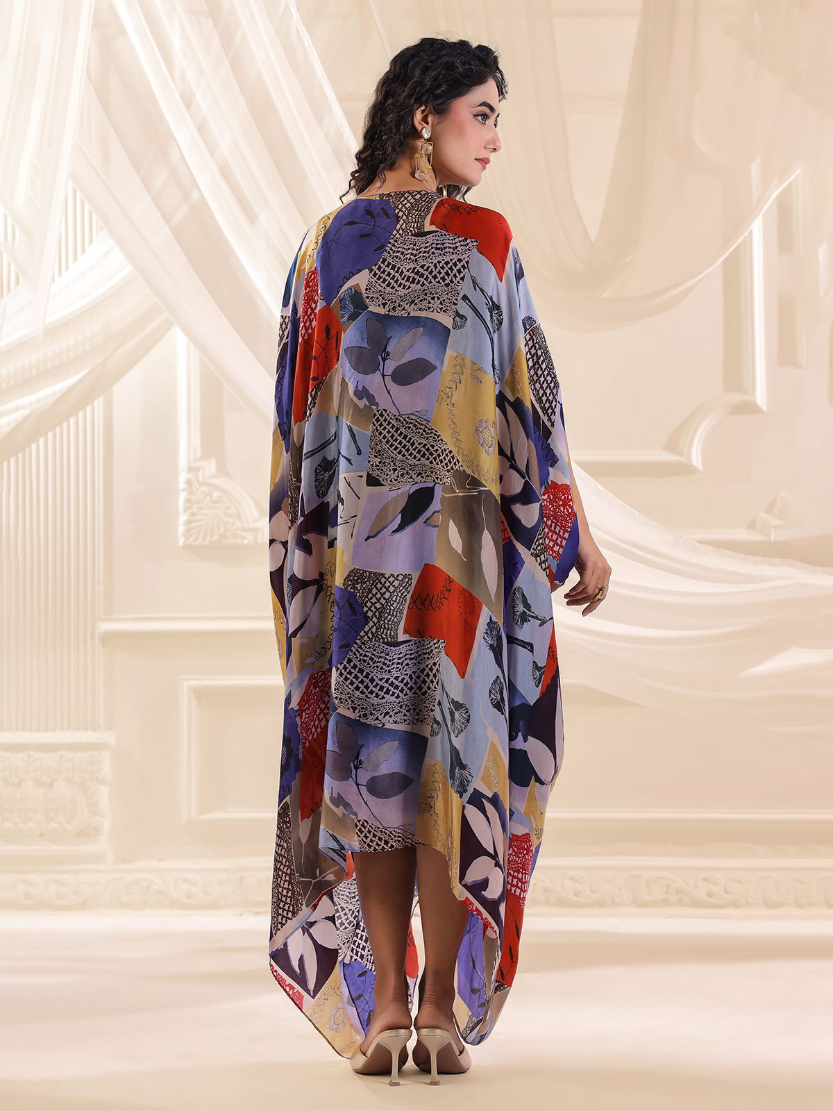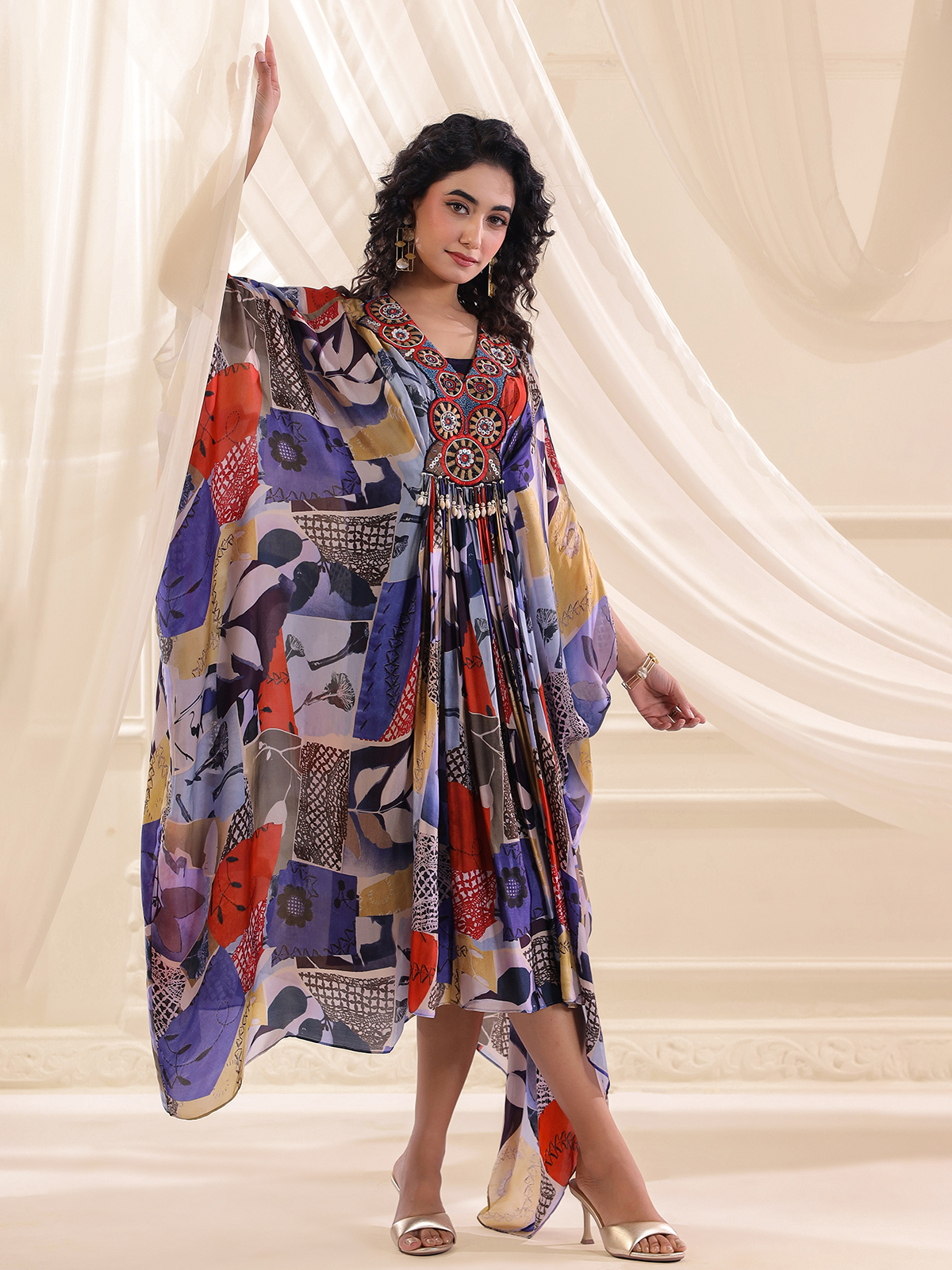 Purple Printed Georgette Silk Kaftan Style Kurti
