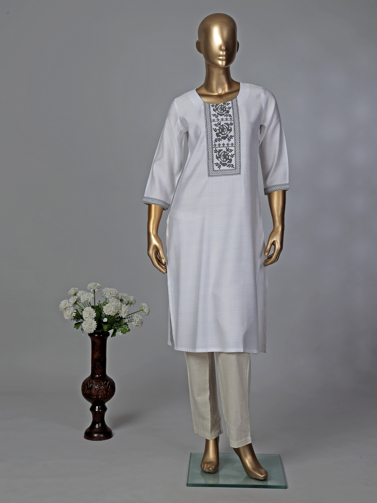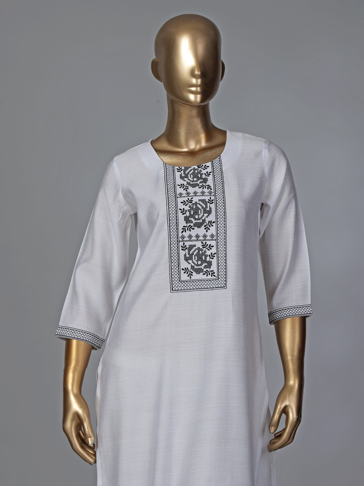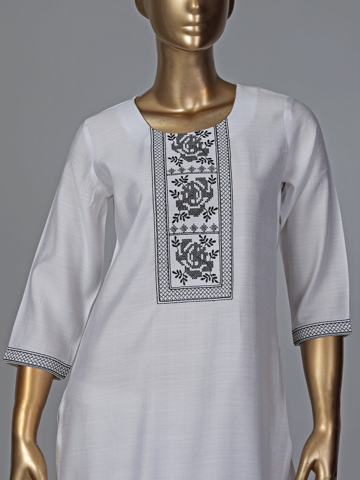 White Cotton Silk Thread Work Elegant Kurti