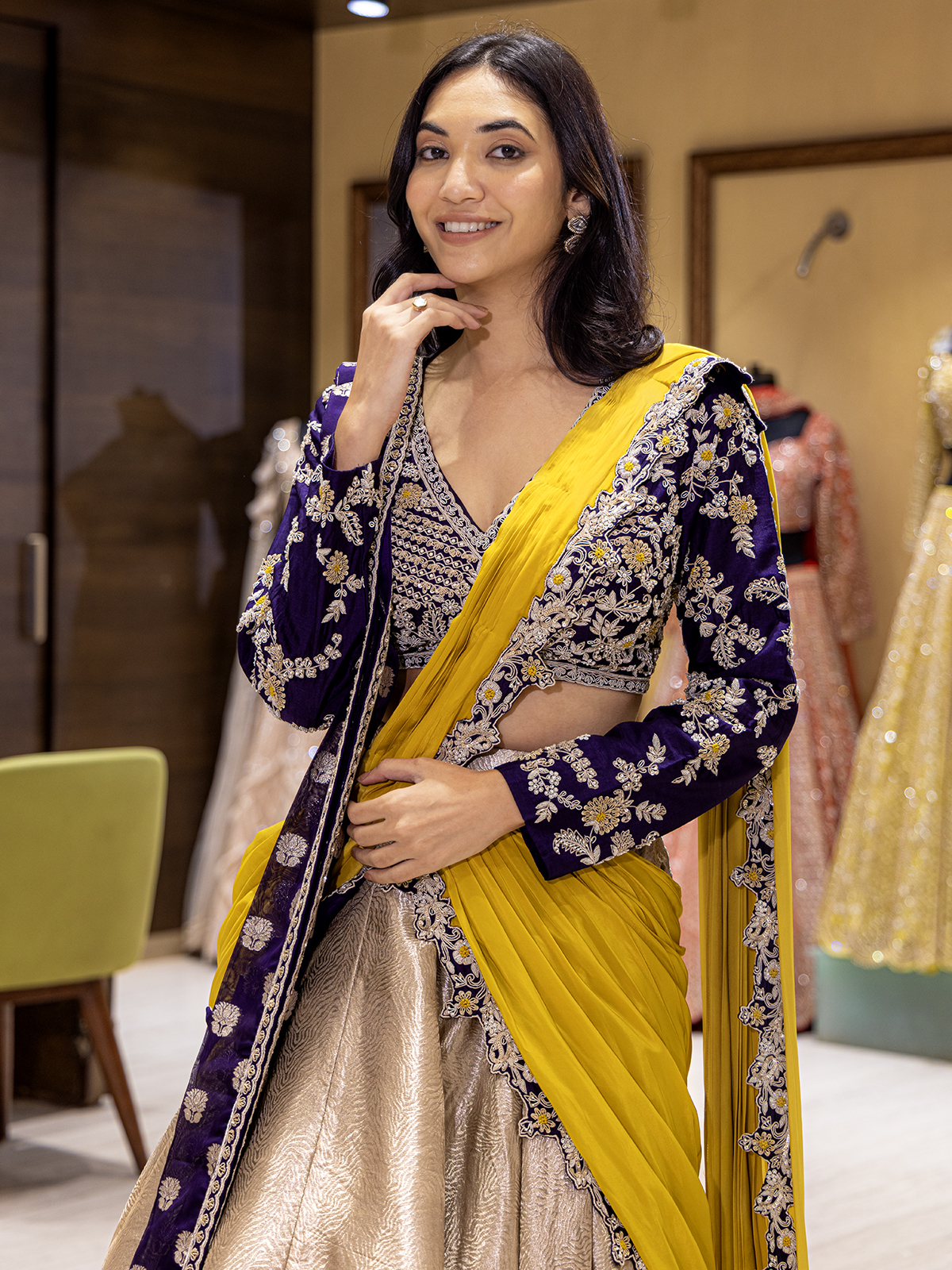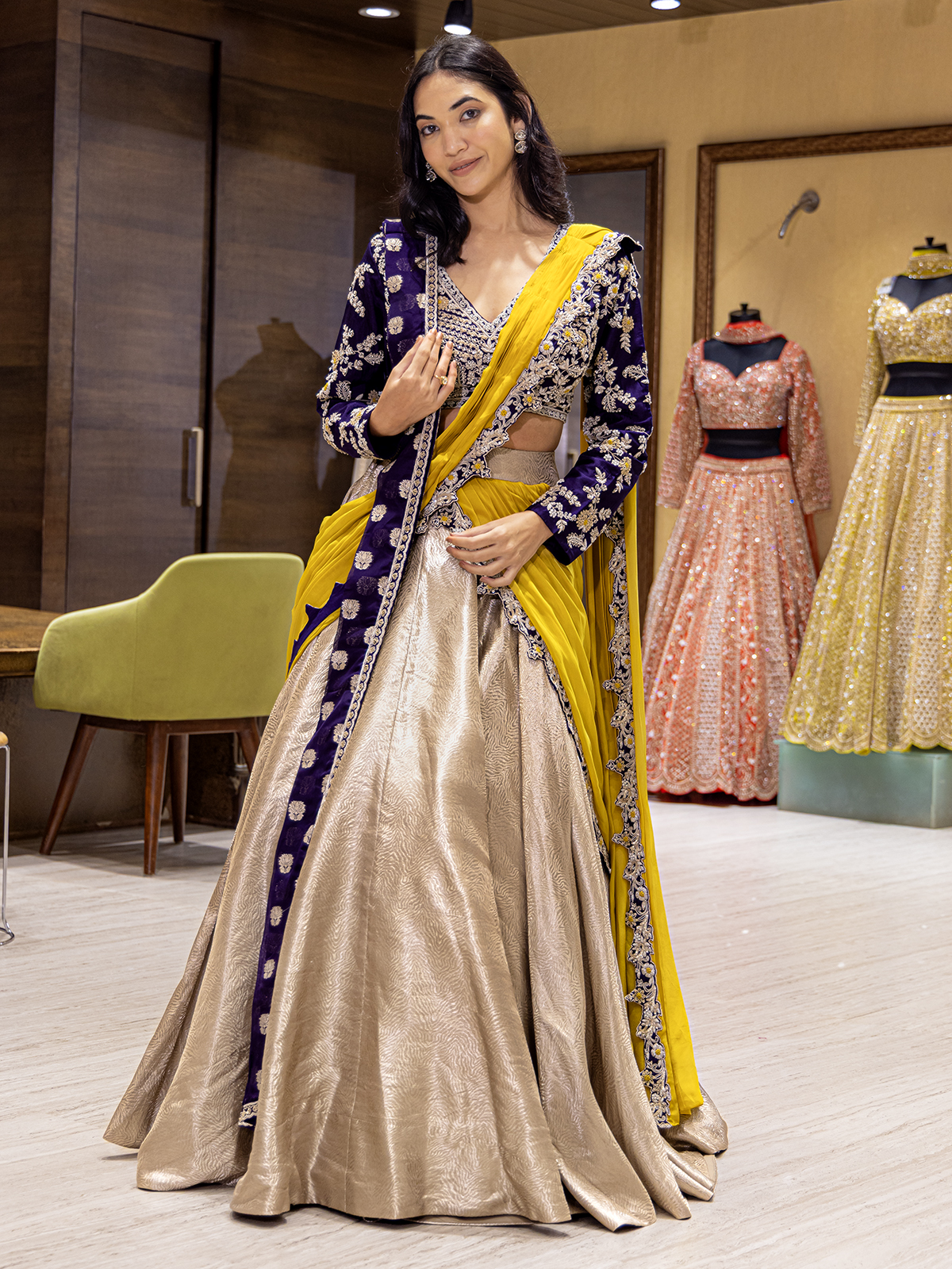 Beige Silk Lehenga Choli With Rich Embellished Blouse