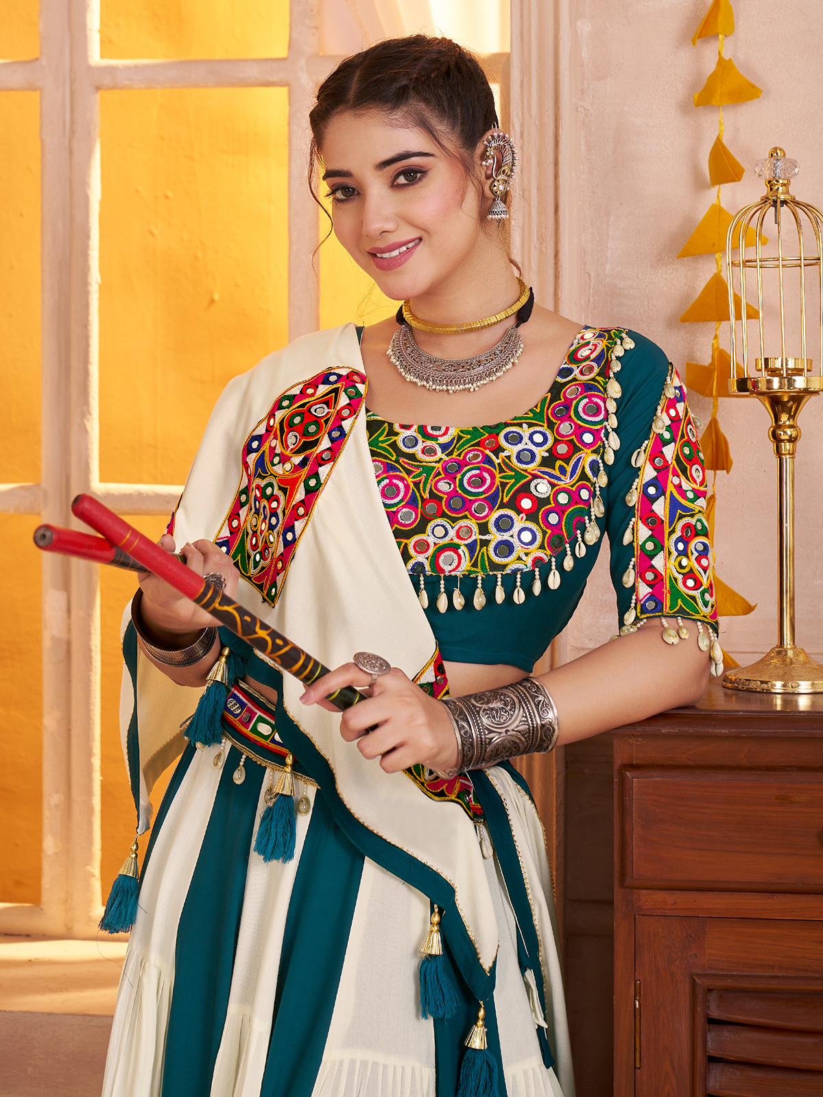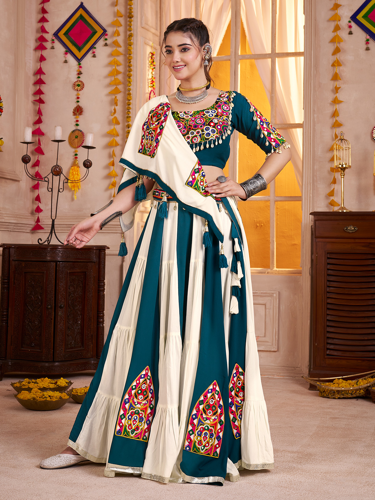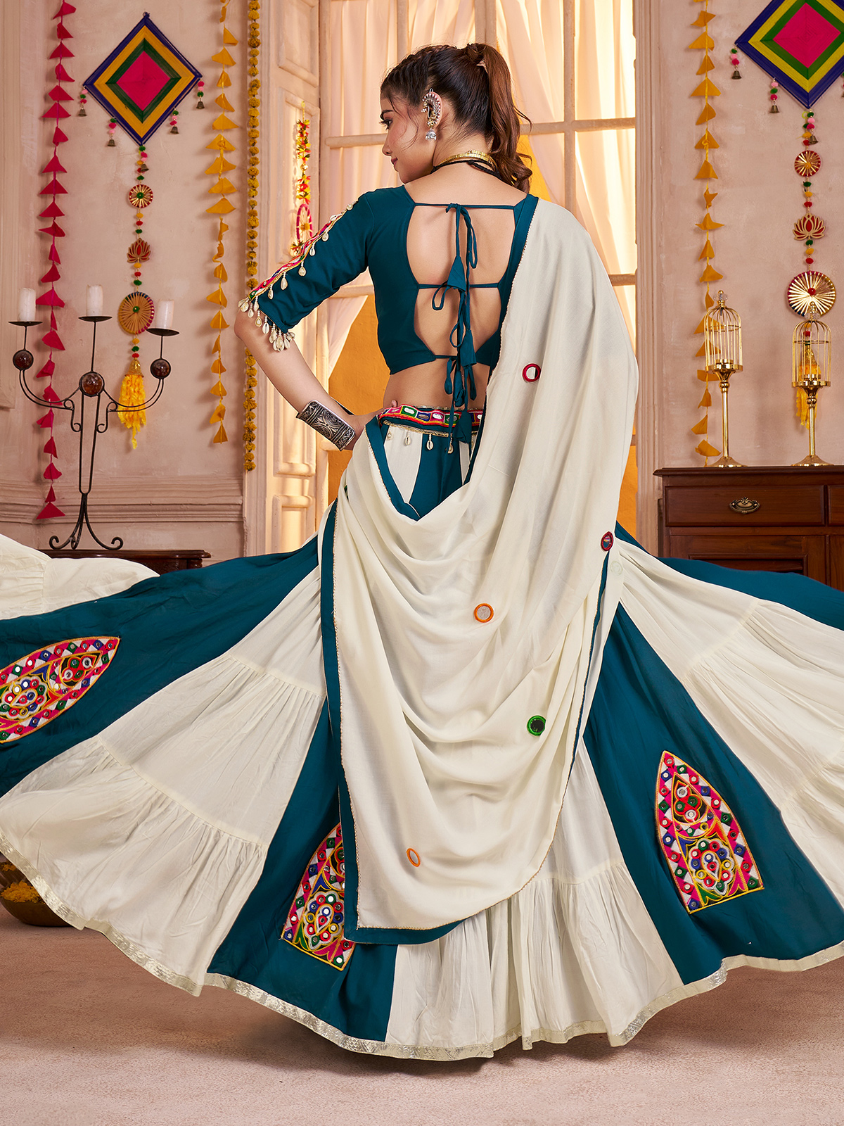 Beige Teal Blue Graceful Navratri Chaniya Choli
