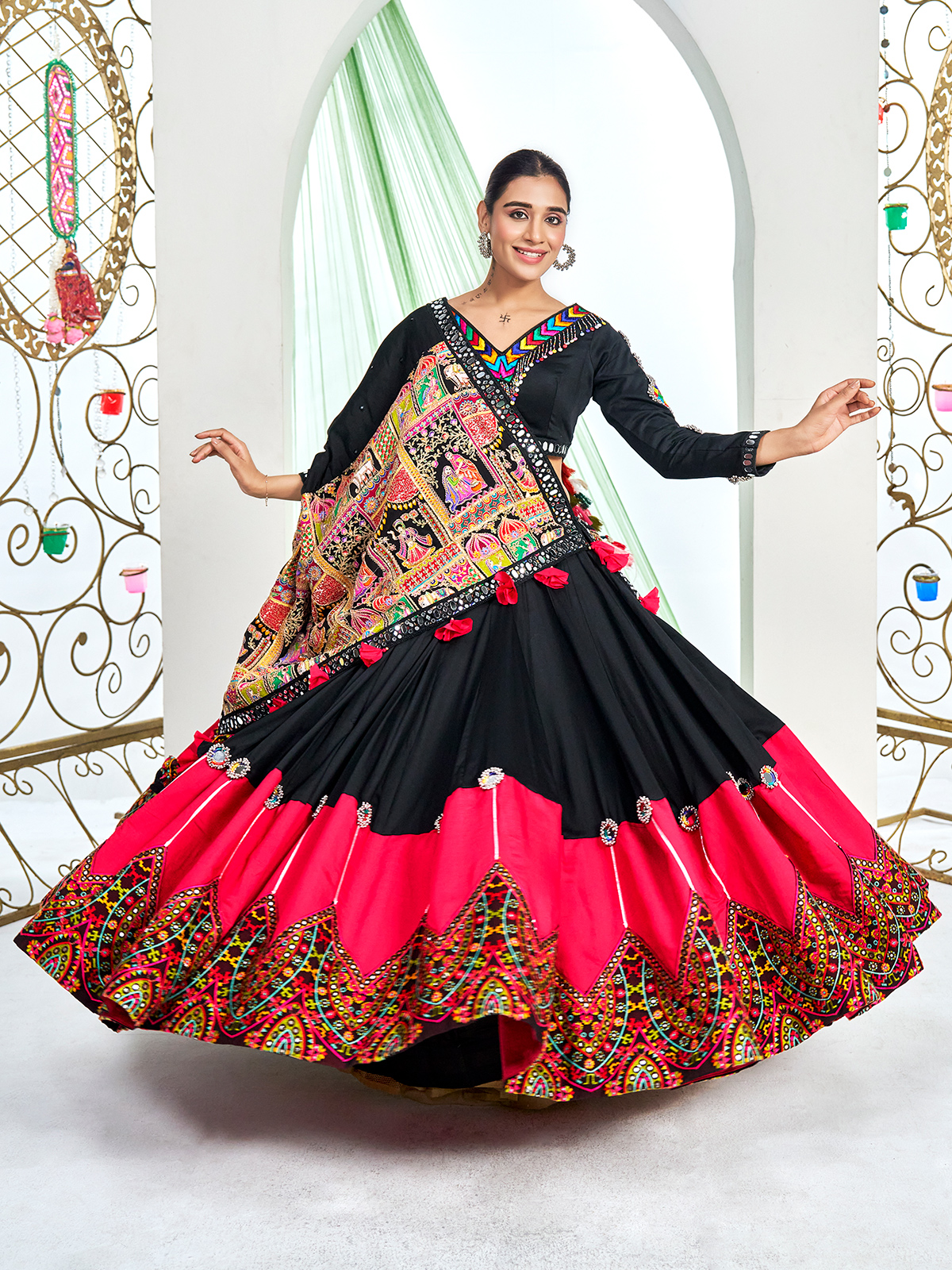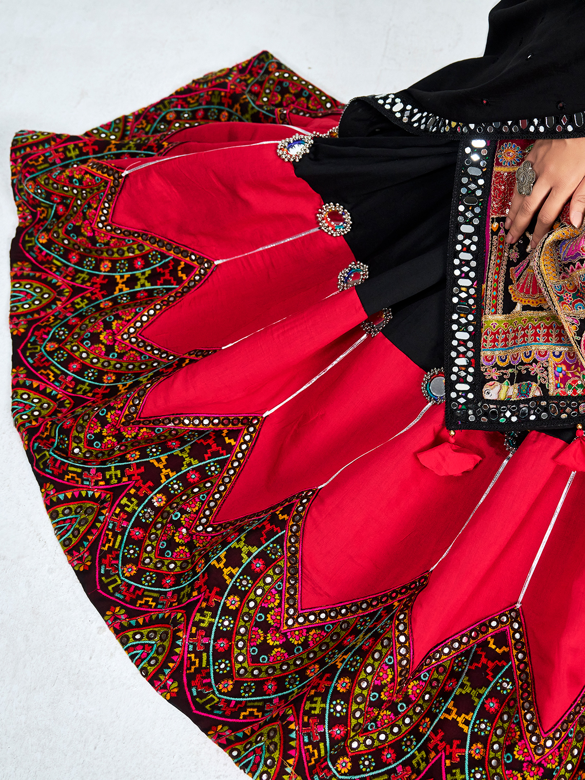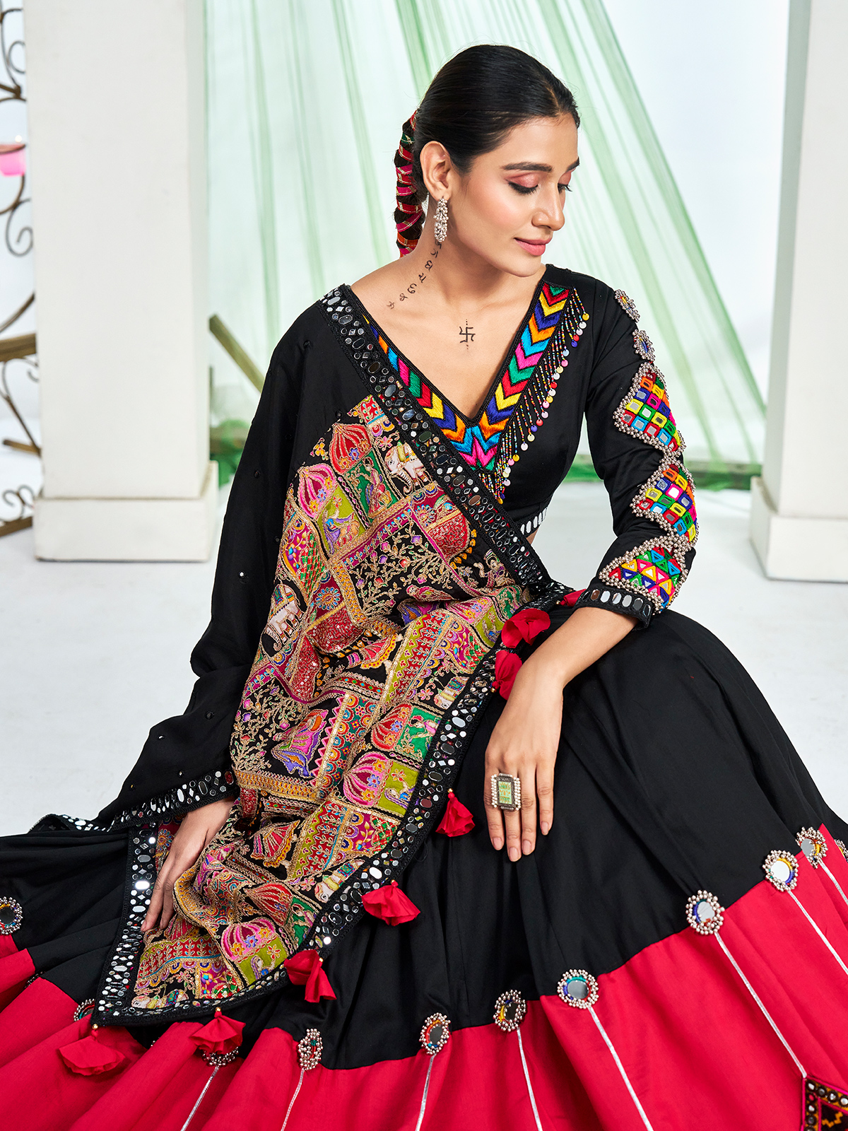 Black And Red Silk Lehenga Choli For Navratri Nights