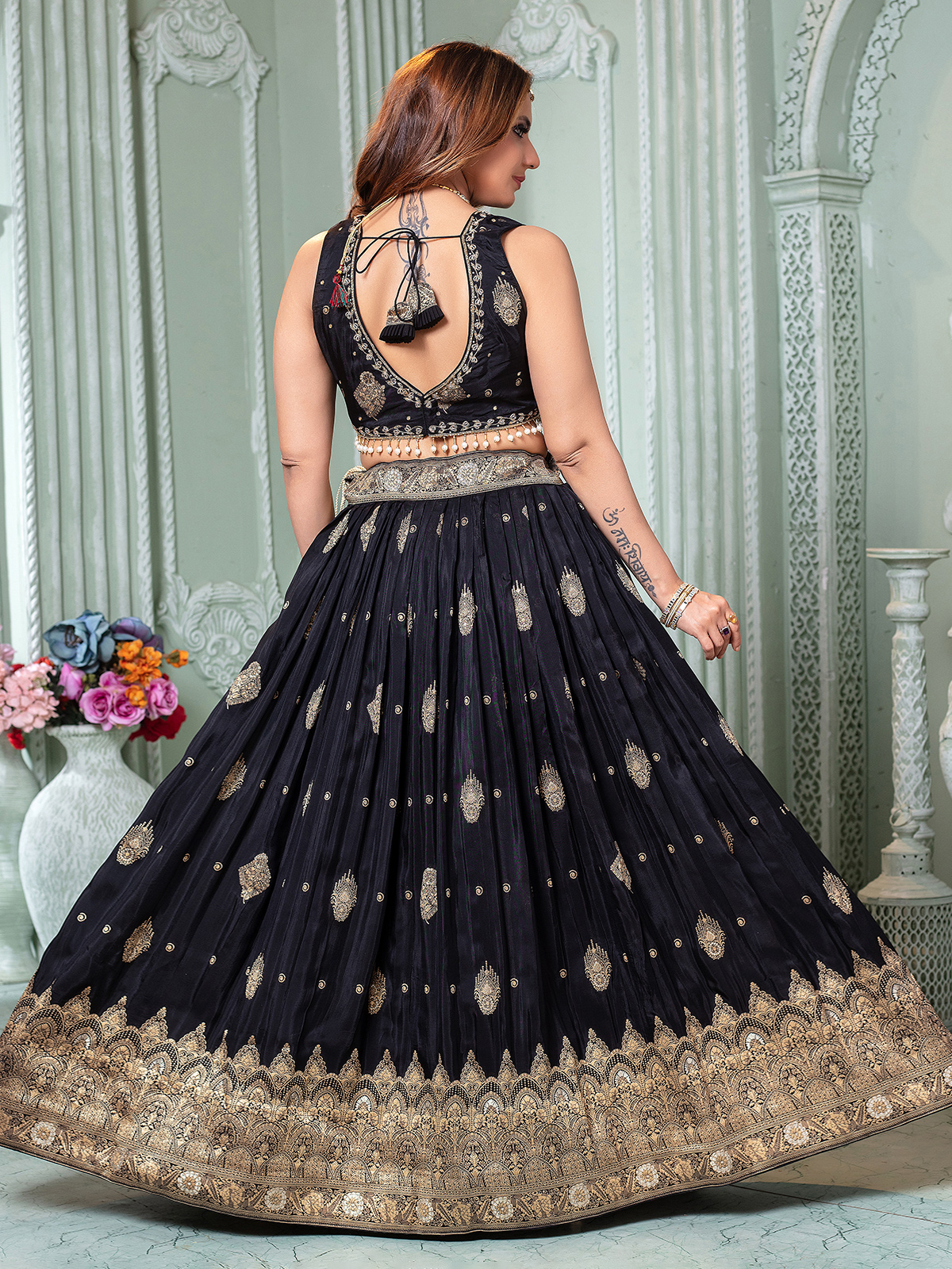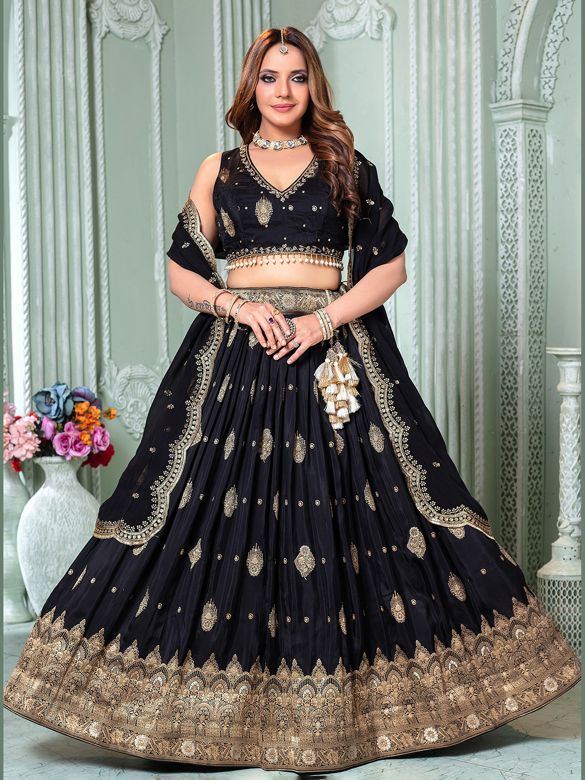 Black Crepe Silk Bridal Lehenga Choli For Weddings