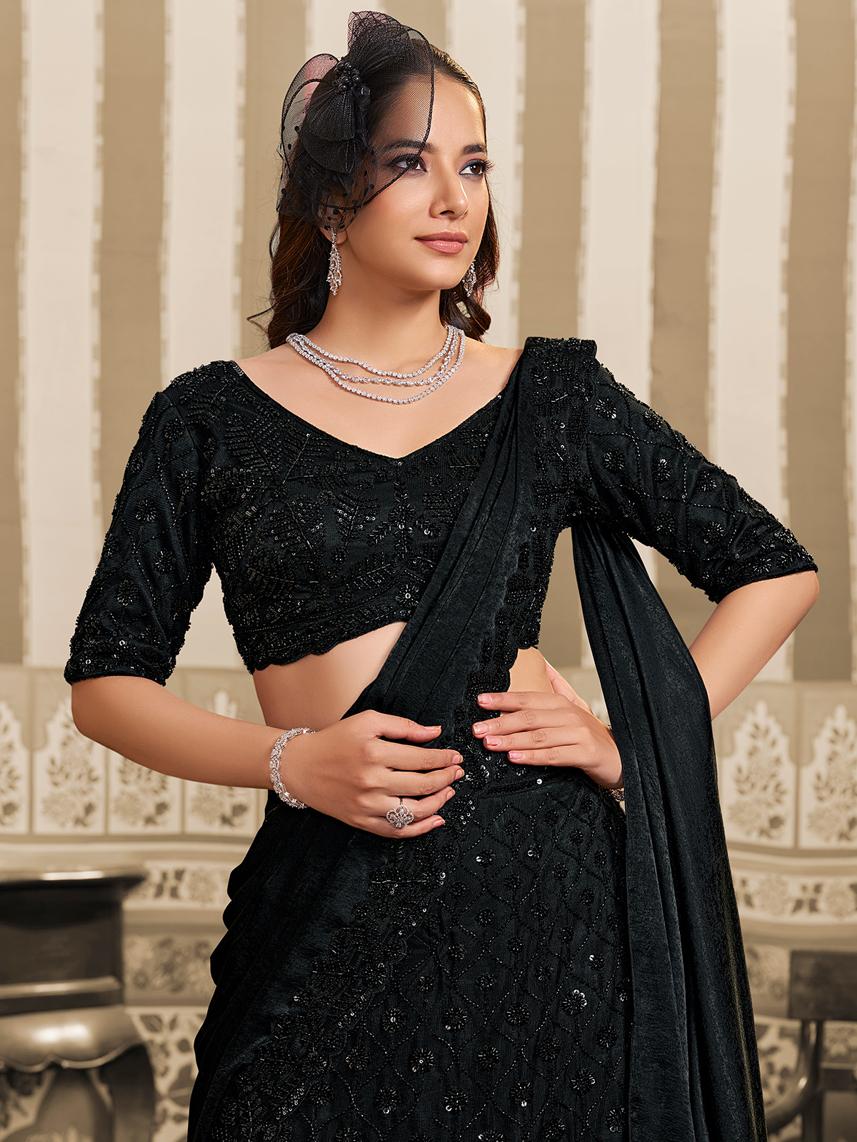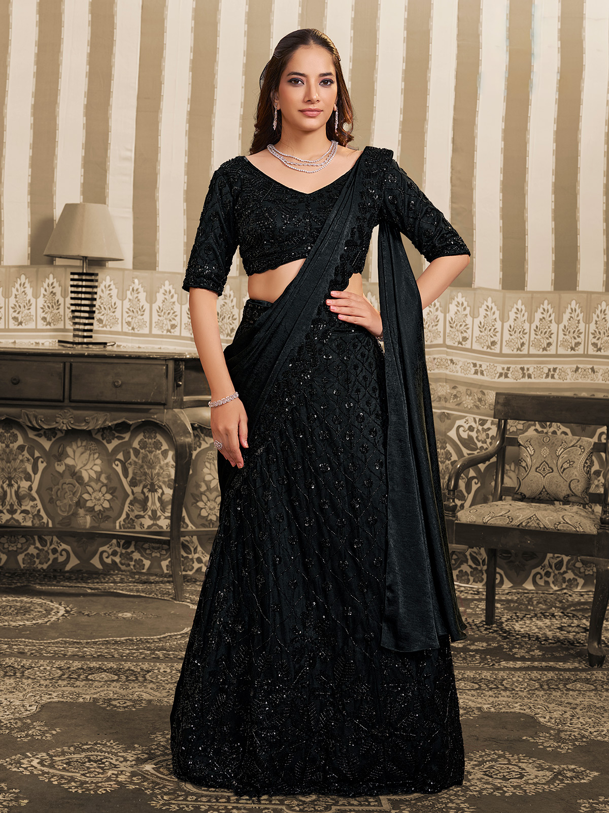 Black Foil Satin Lehenga Saree With Cutdana Detailing
