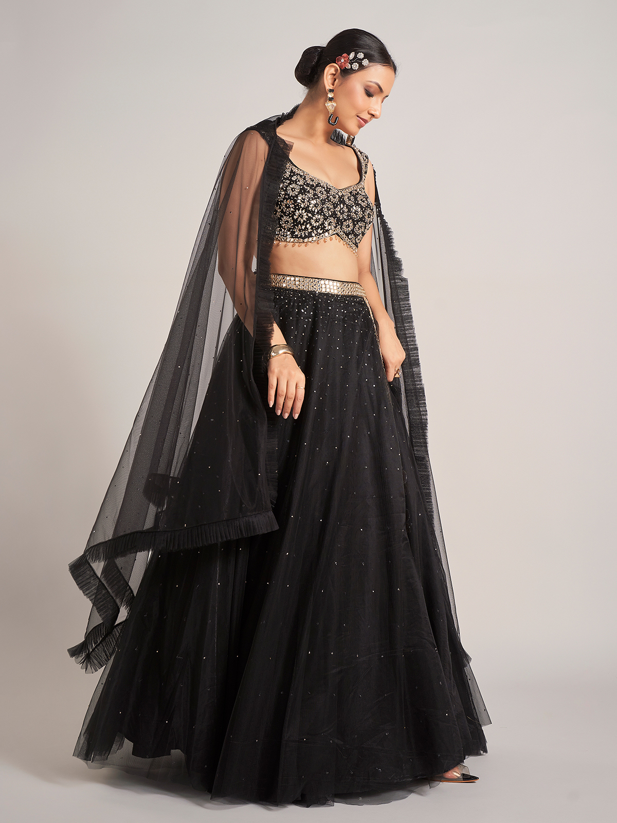 Black Party Wear Net Lehenga Choli With Dupatta
