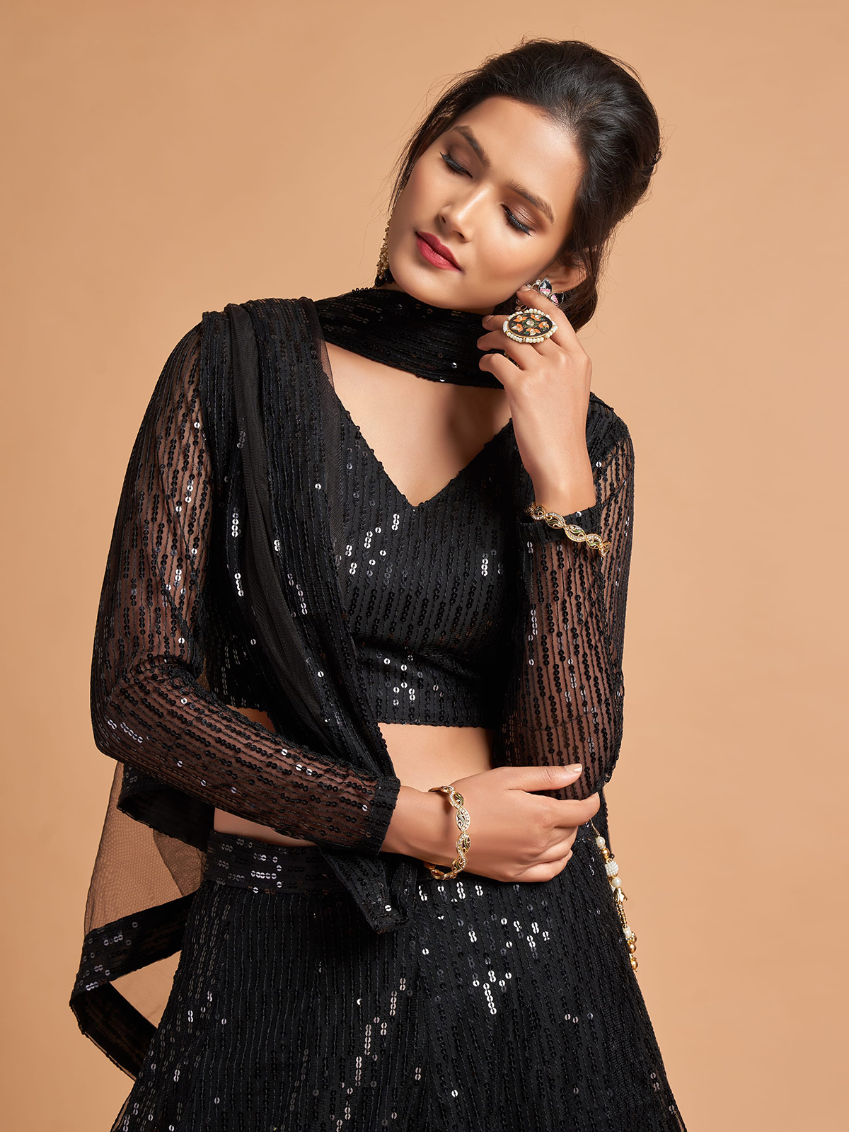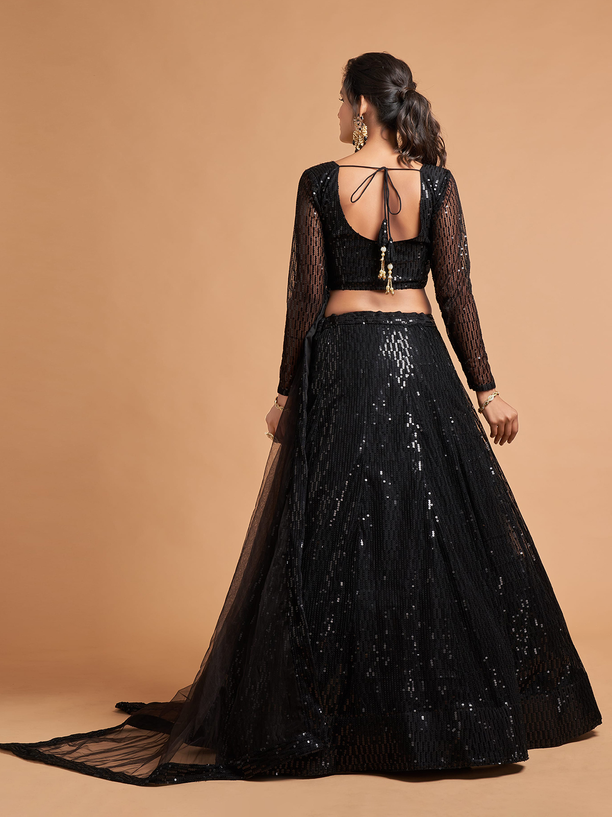 Black Party Wear Net Lehenga Choli With Sequin Work