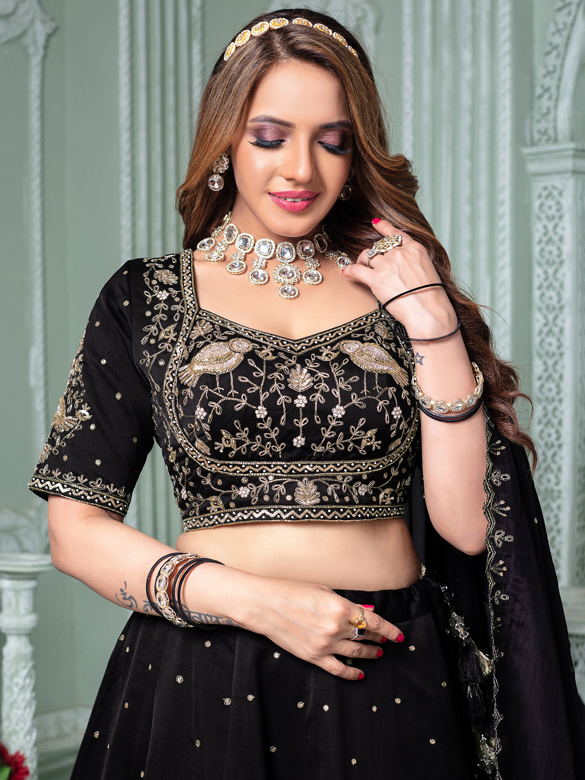 Black Raw Silk Lehenga Choli With Sweetheart Neck Design