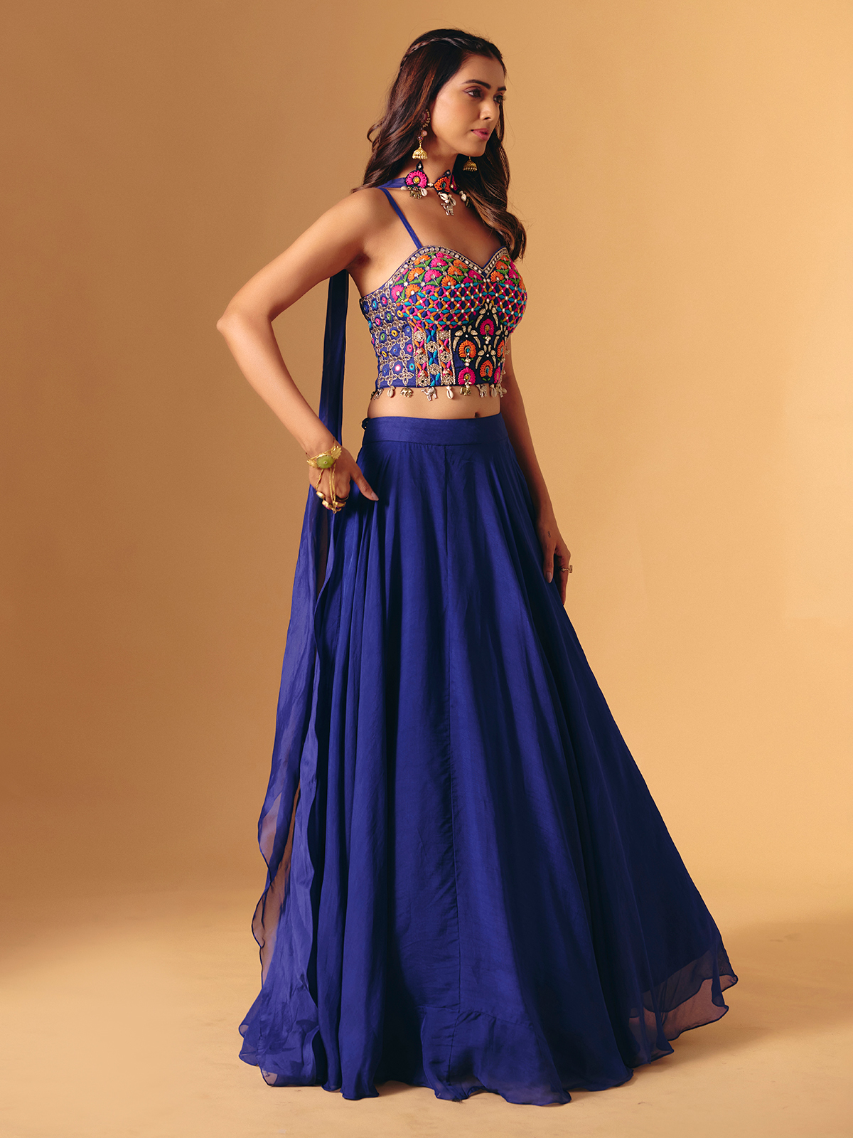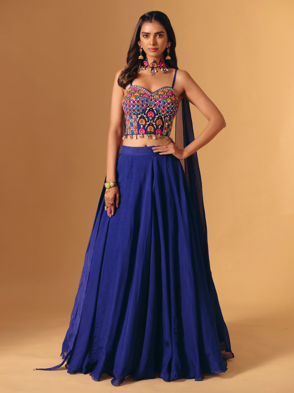Blue Georgette Lehenga Choli With Cowrie Shell