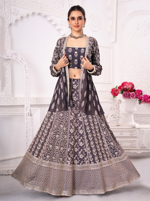 Blue Jacket Style Silk Lehenga Choli With Ready Made Blouse