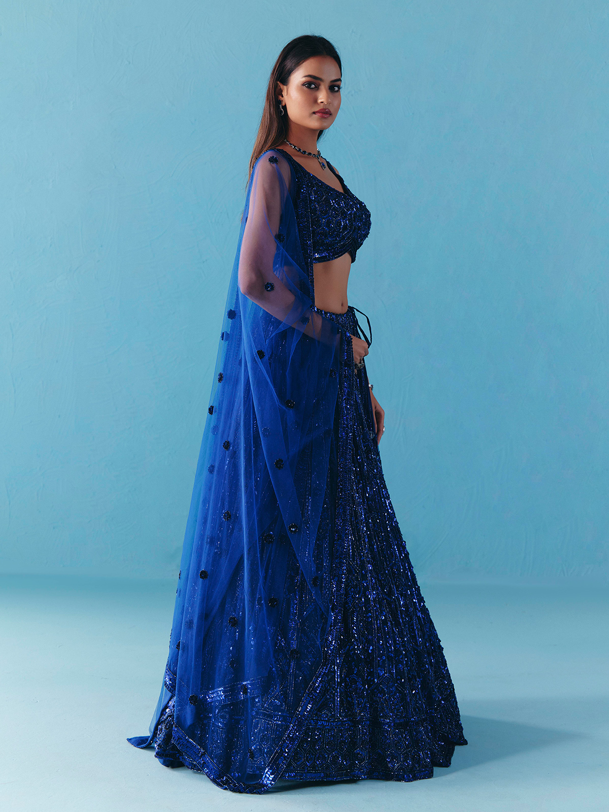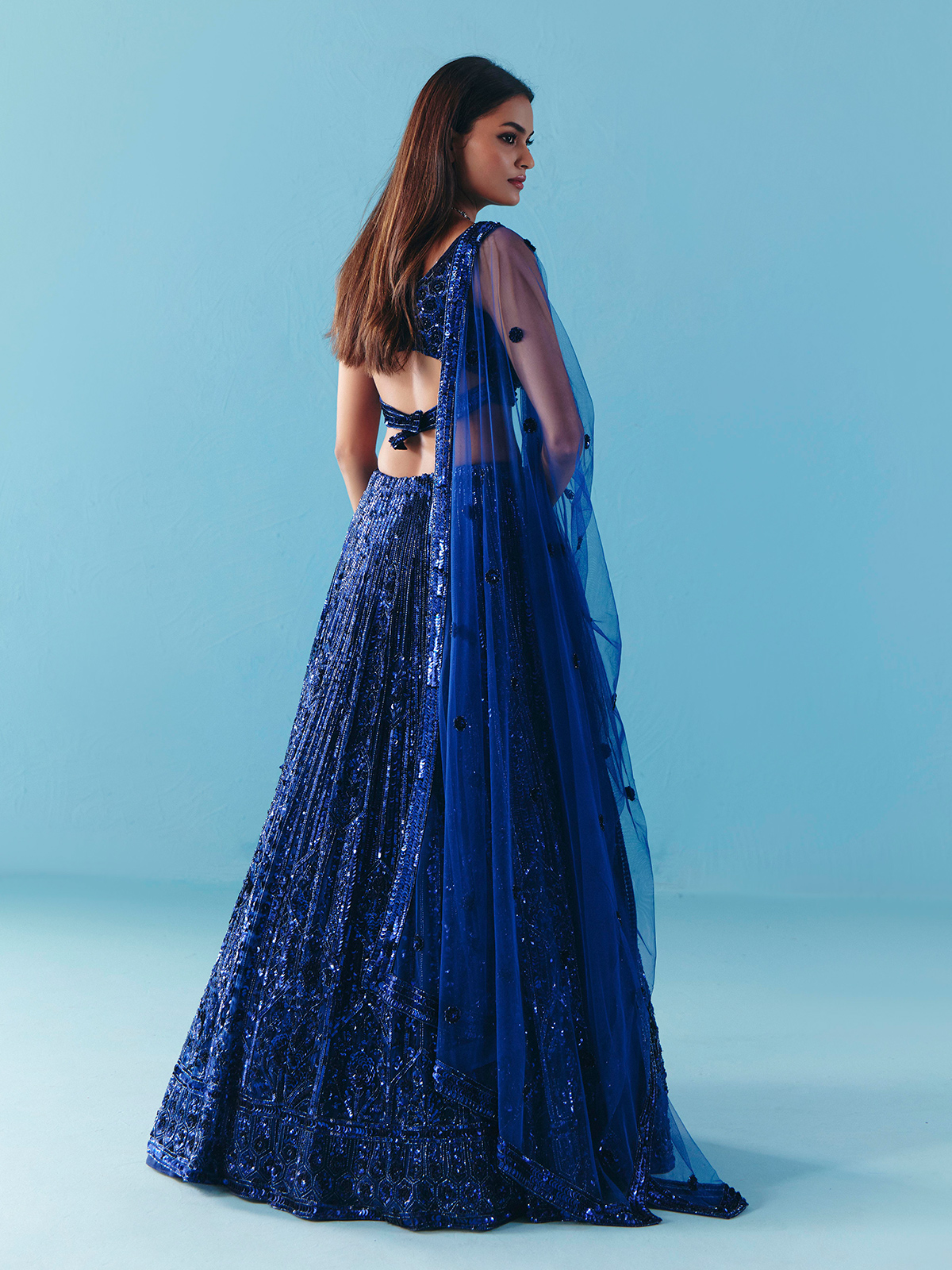 Blue Net Cutdana Sequins Lehenga Choli