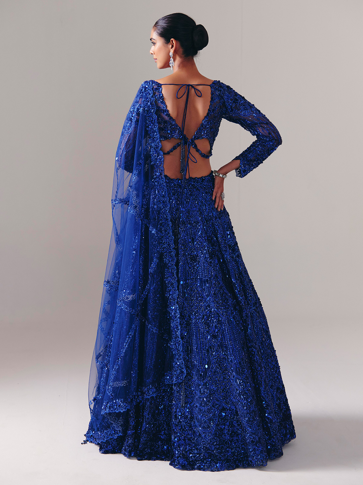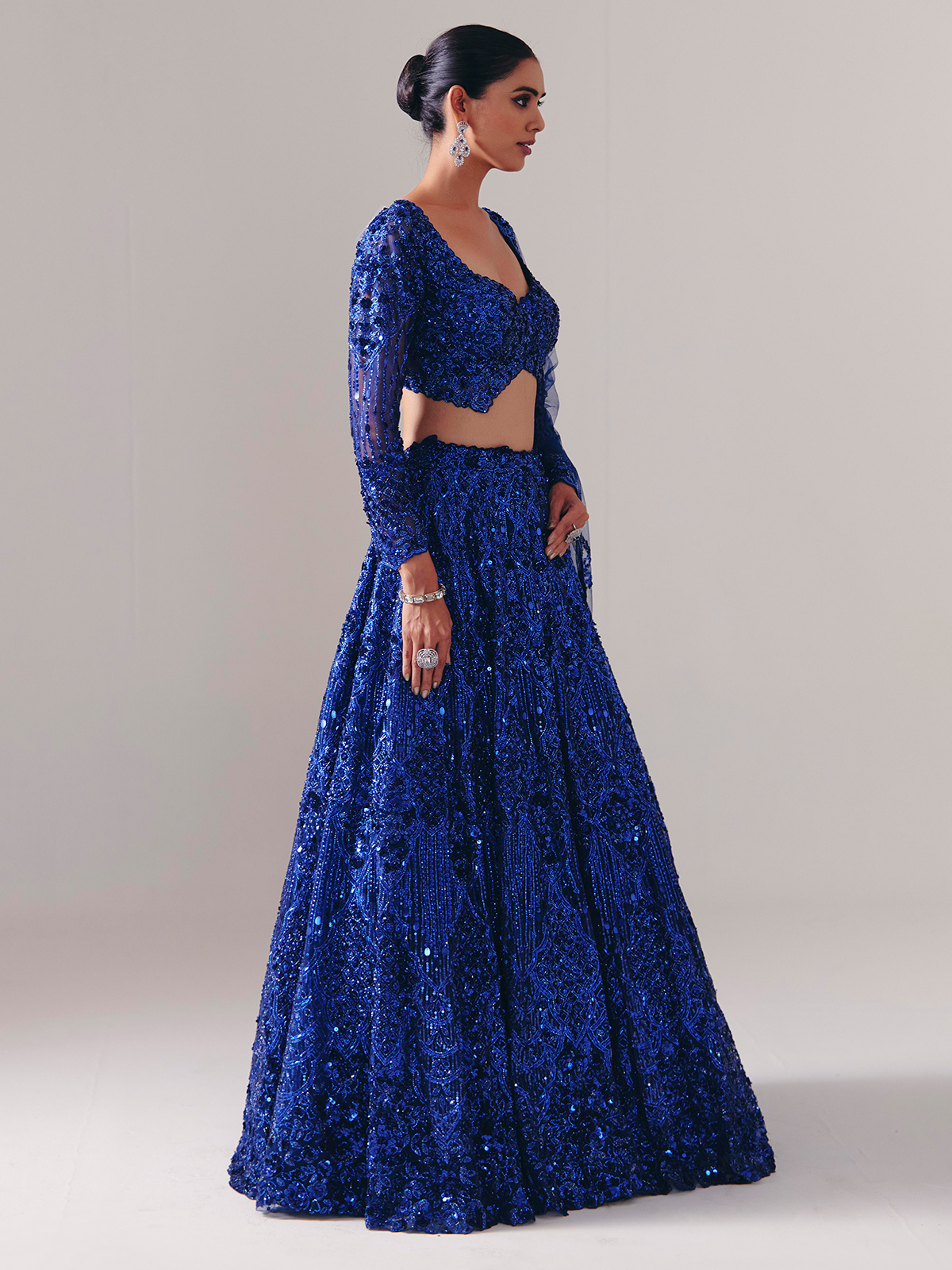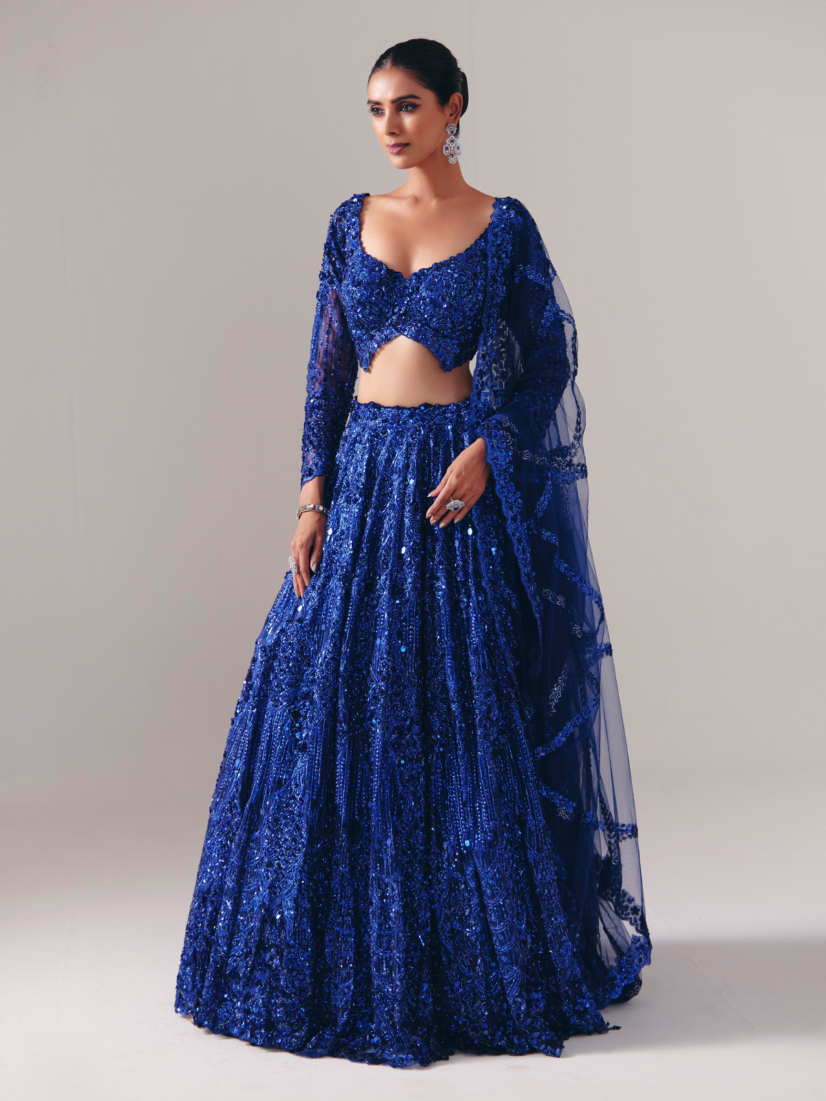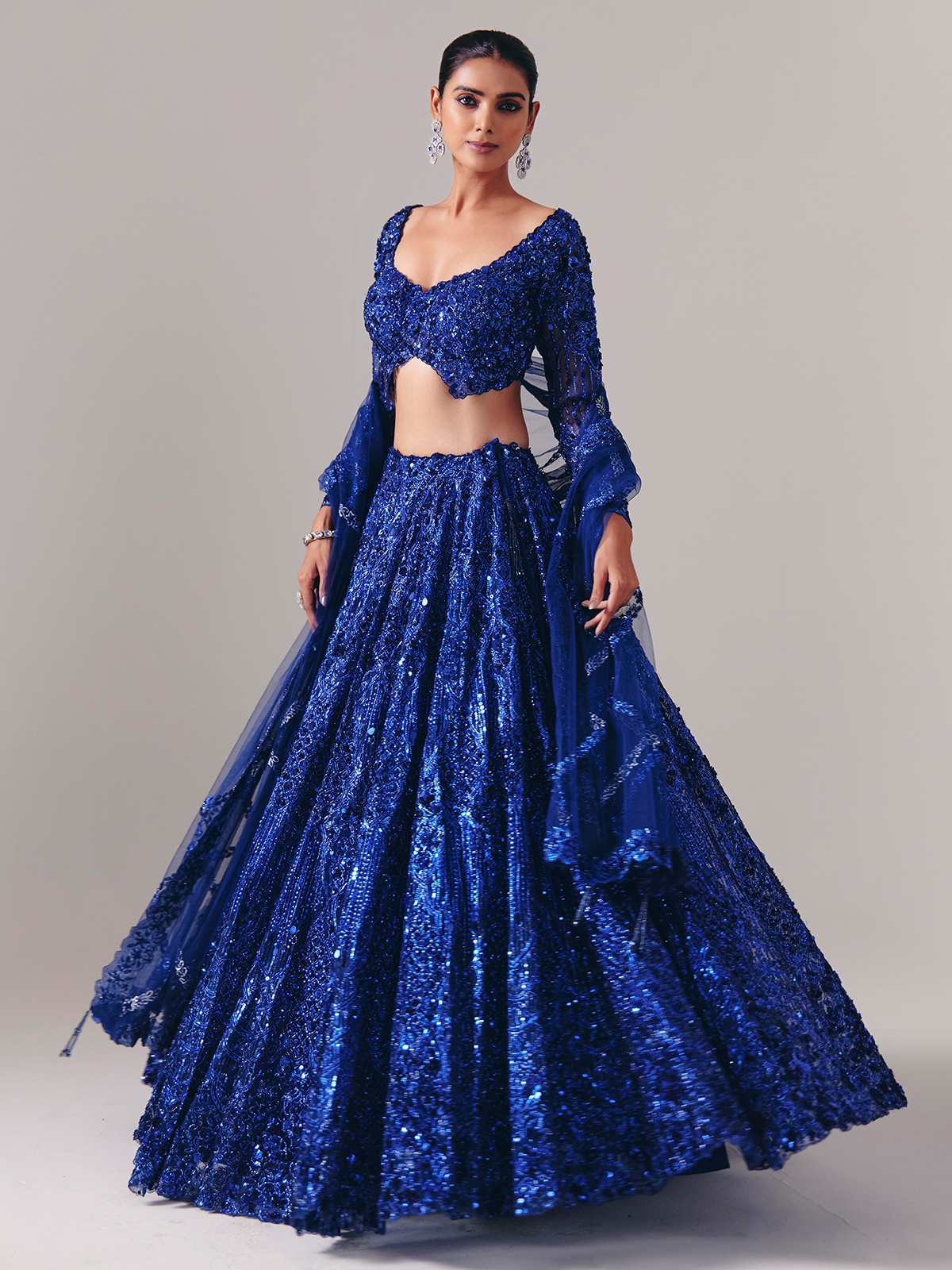 Blue Net Lehenga With Cutdana Sequins Sparkle