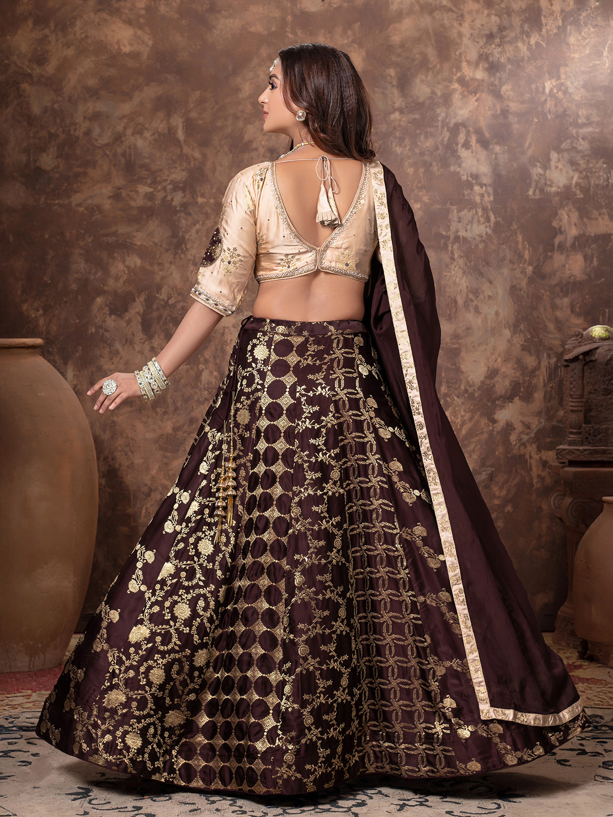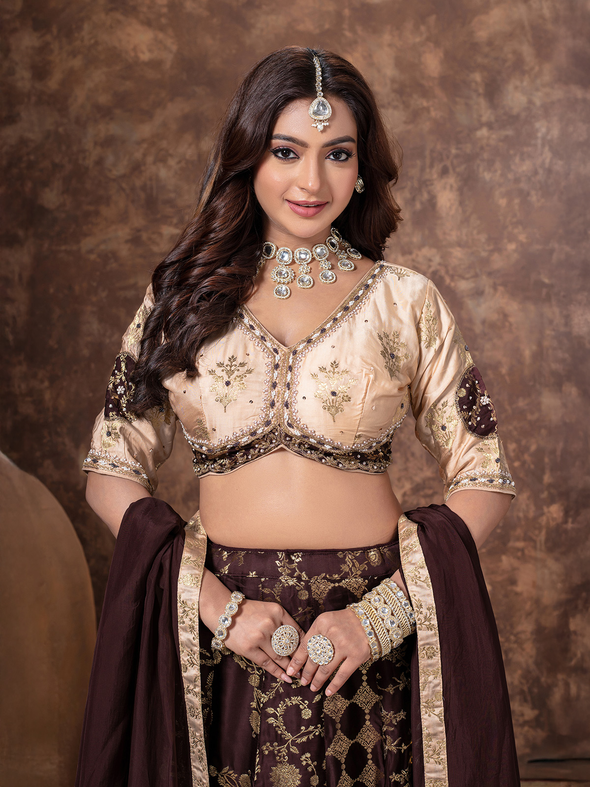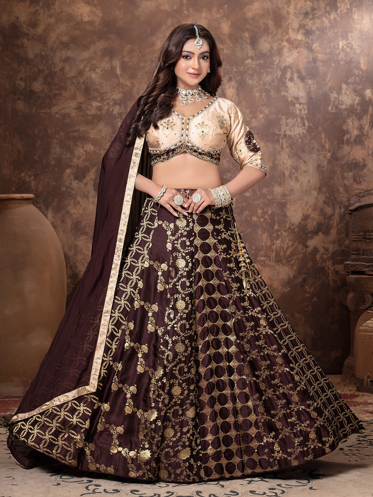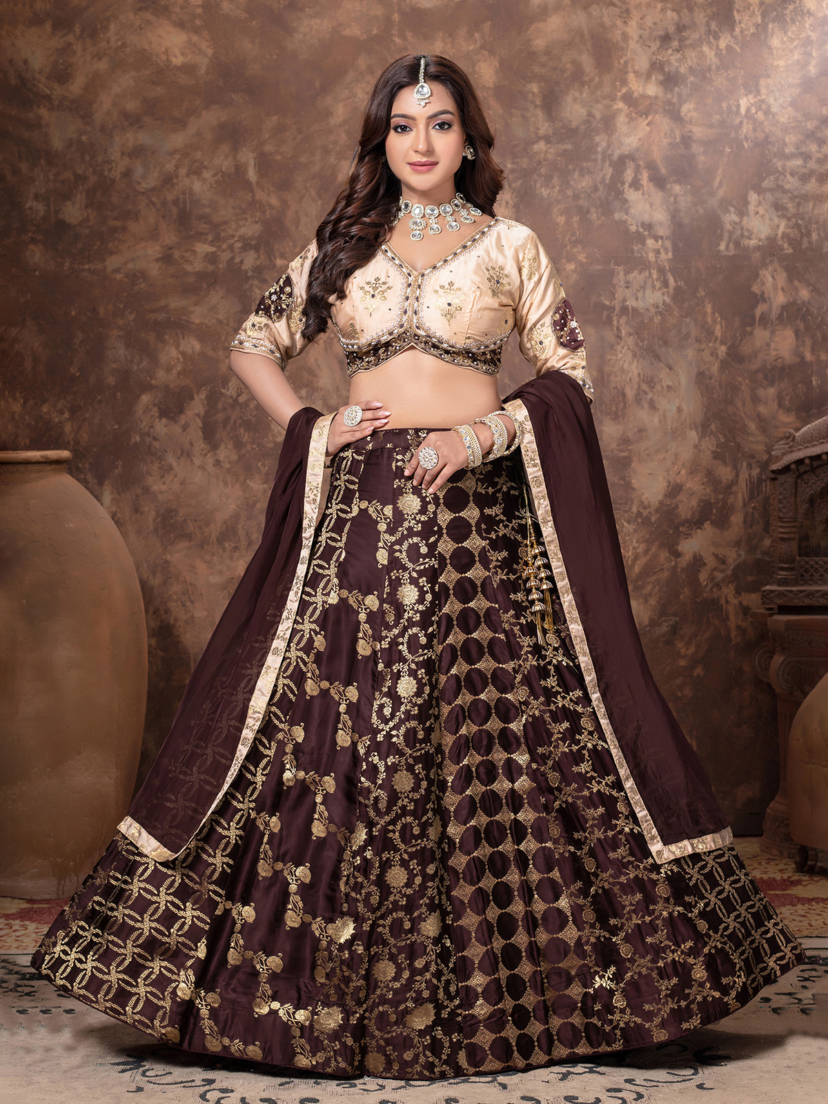 Brown Silk Lehenga Choli For Women Wedding Wear