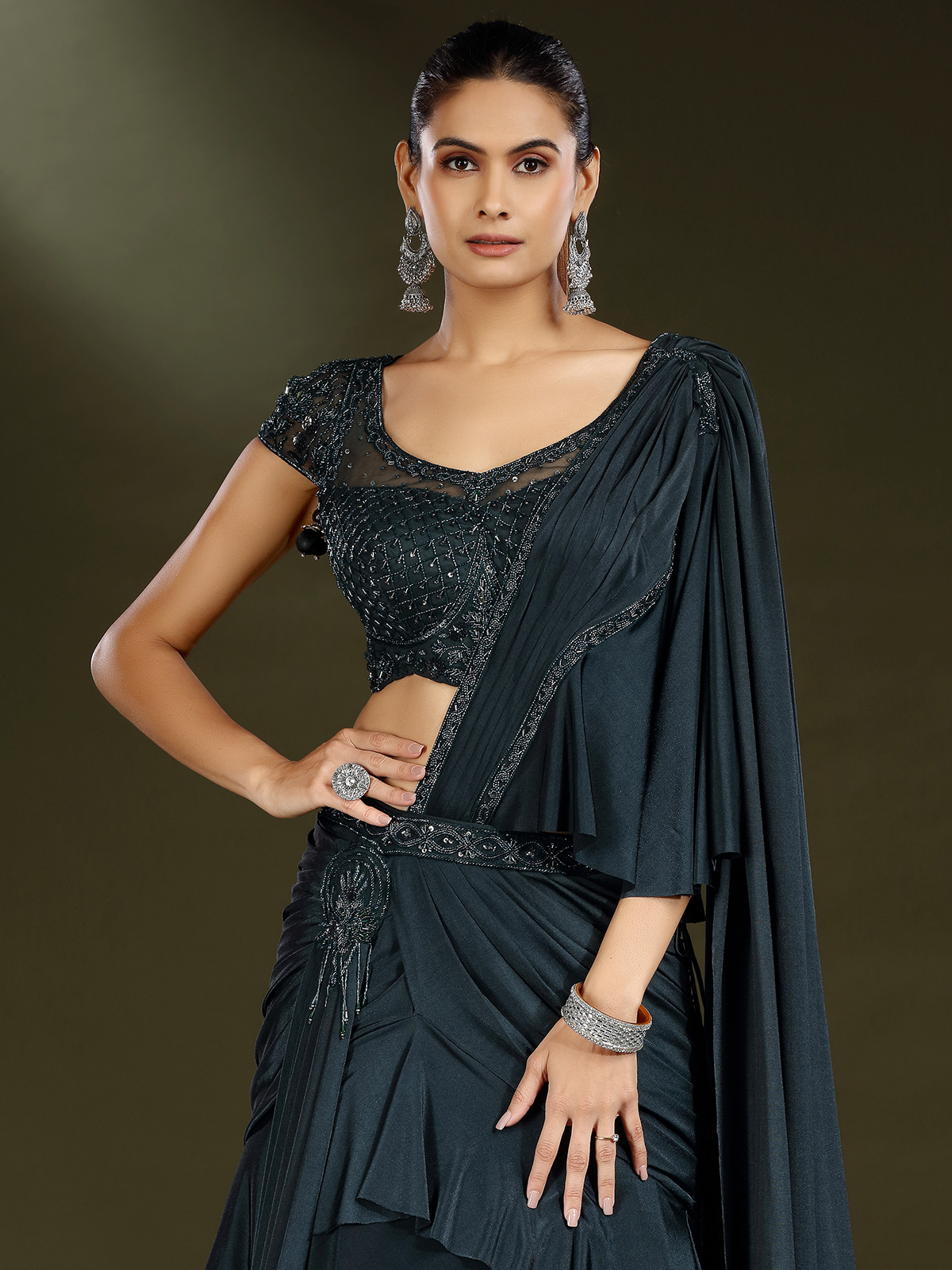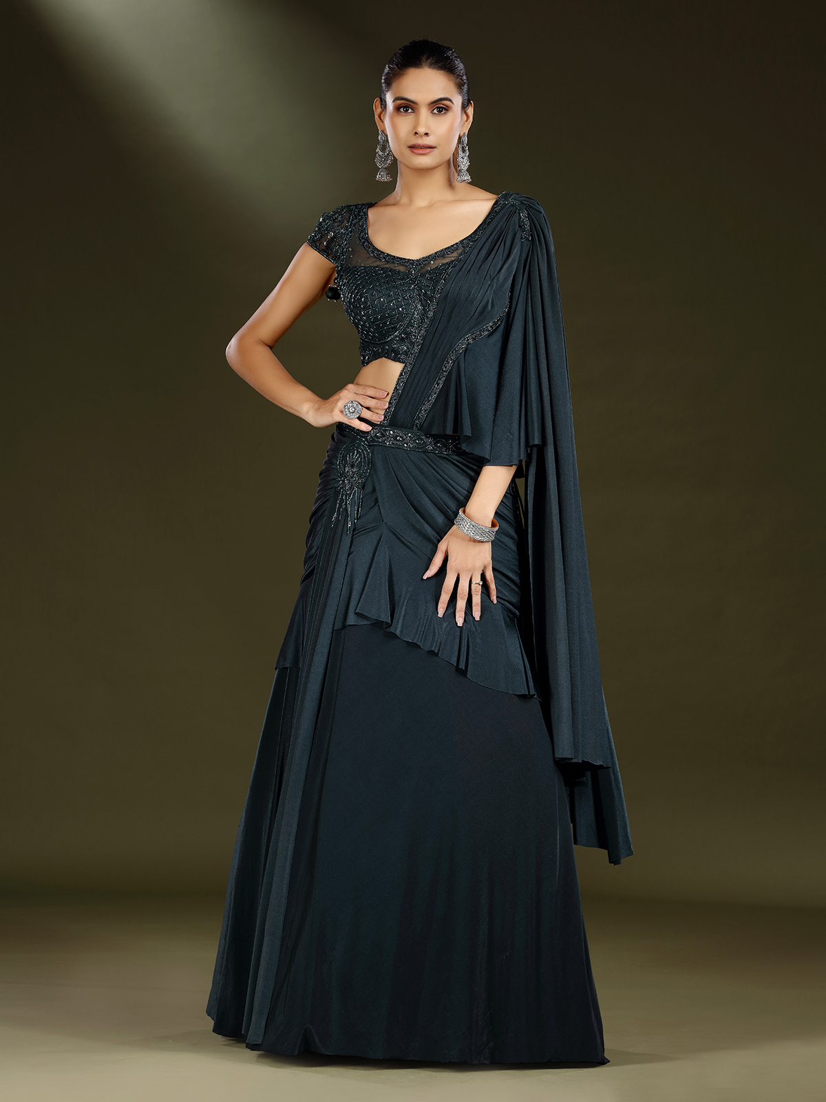 Charcoal Black Lycra Lehenga With Cap Sleeves