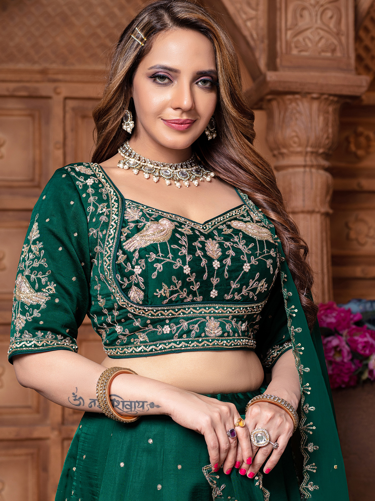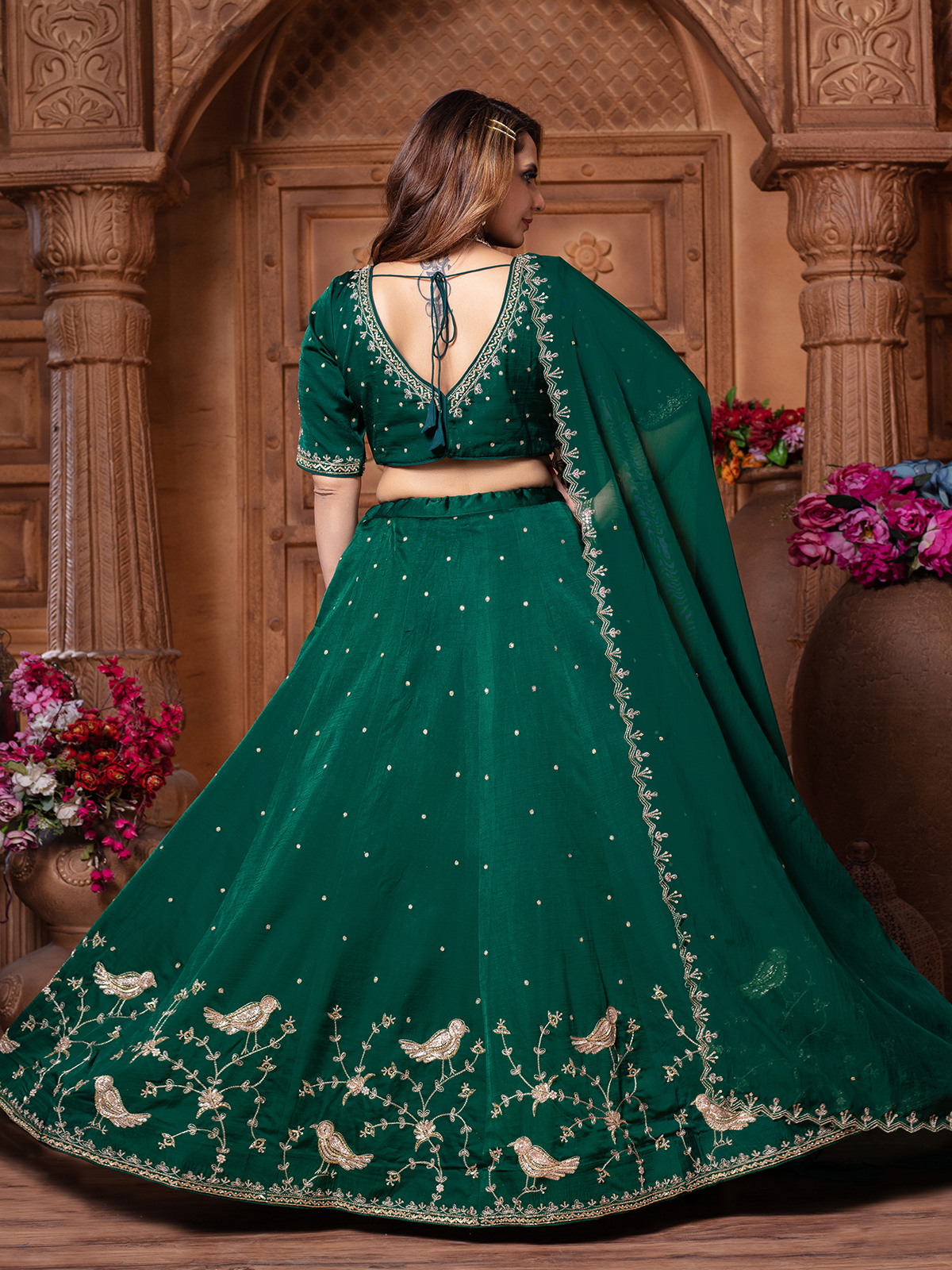 Classic Bottle Green Raw Silk Lehenga Choli For Occasions