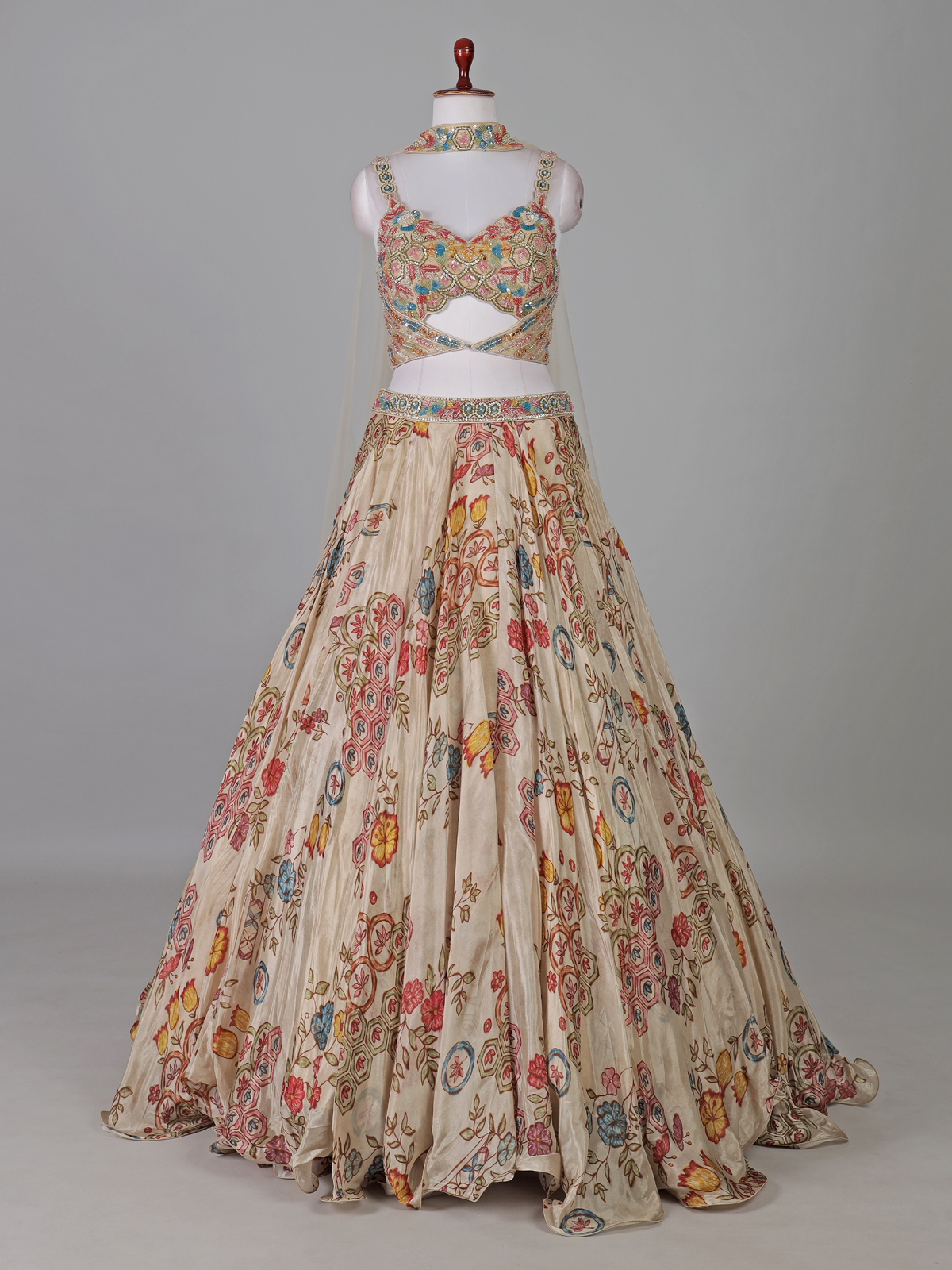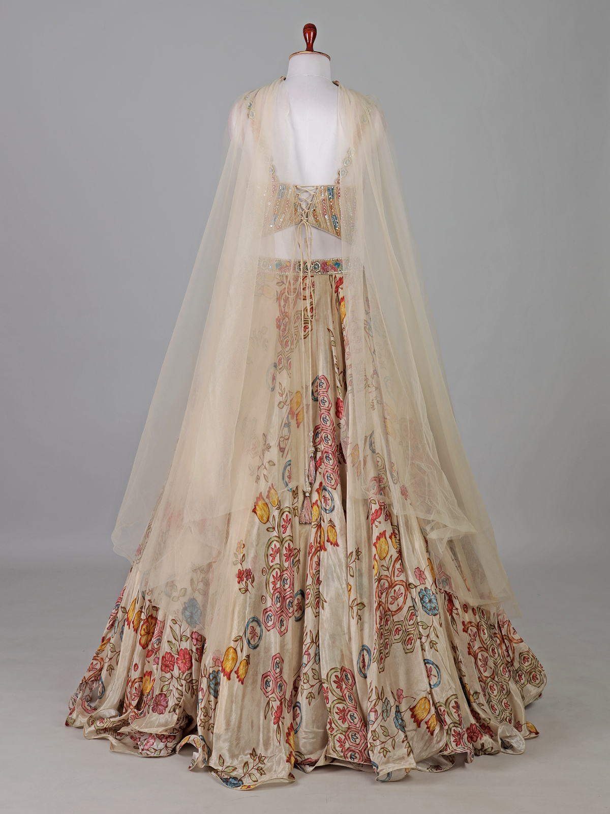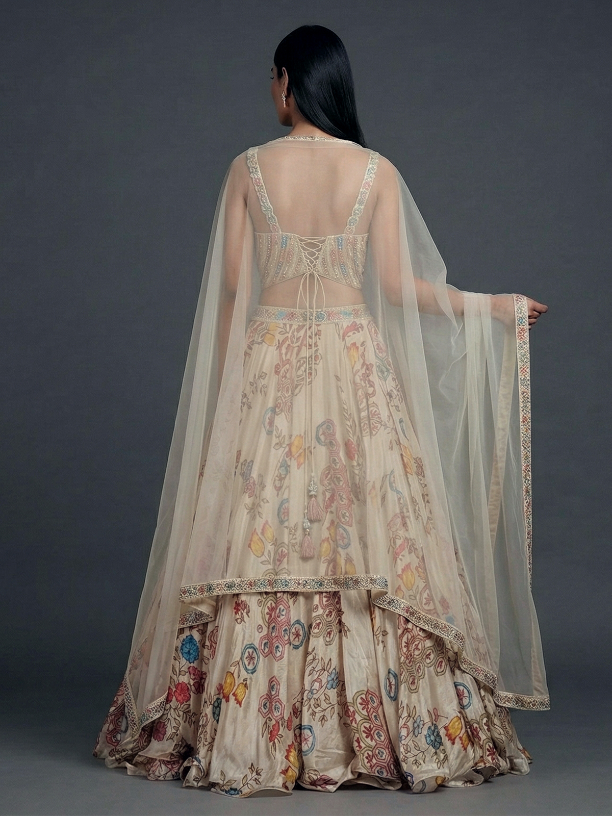 Cream Crepe Silk Embellished Designer Lehenga Choli