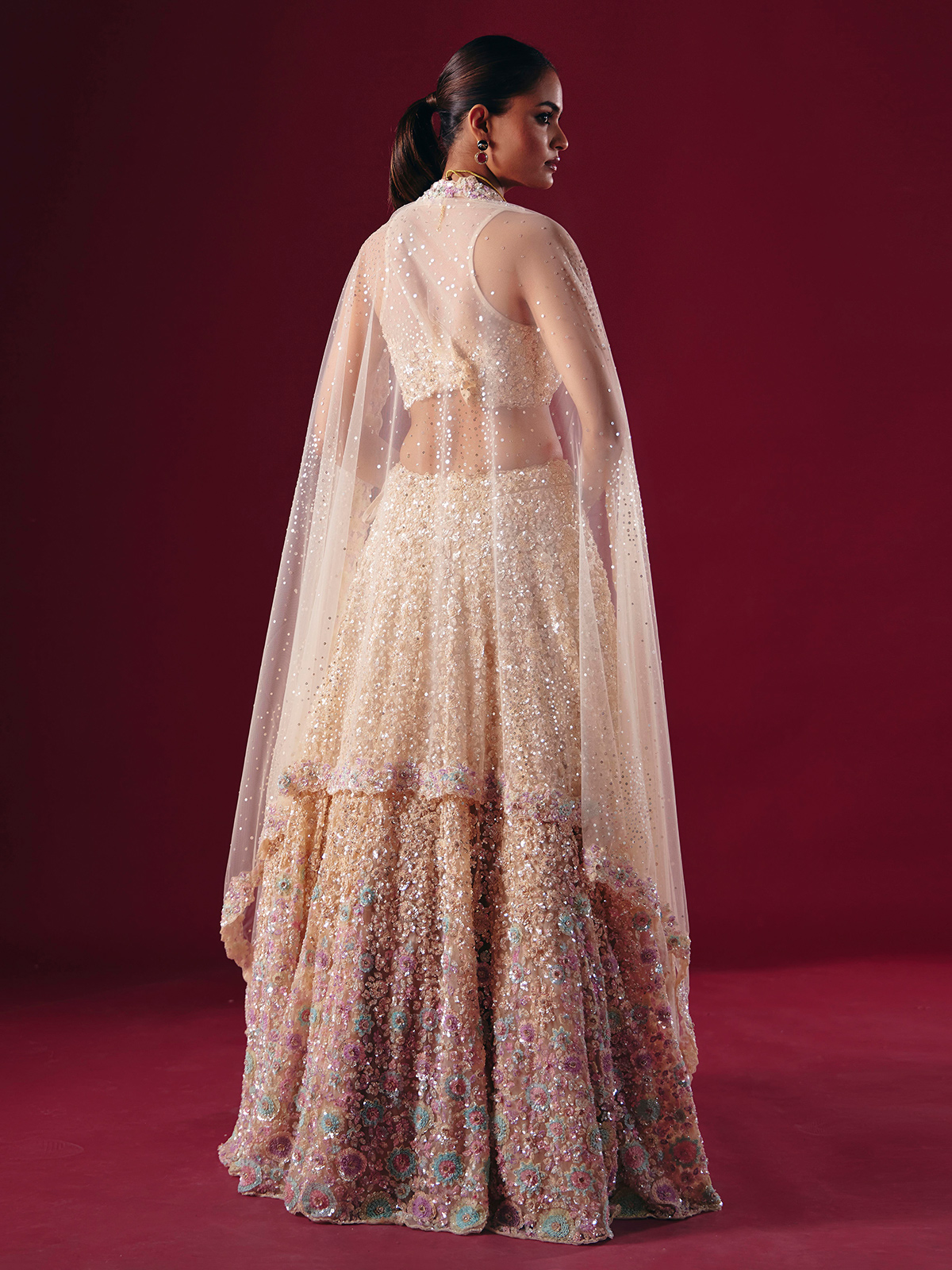 Cream Net Lehenga With Diamond Sequins Glimmer