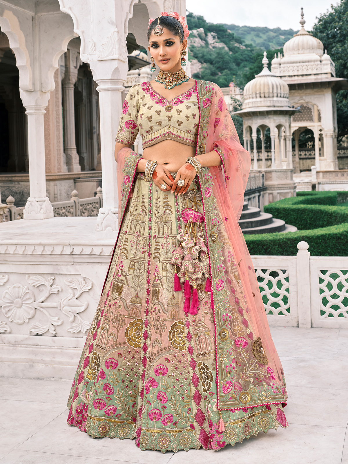 Cream Silk Lehenga Choli Enhanced With Resham Embroidery