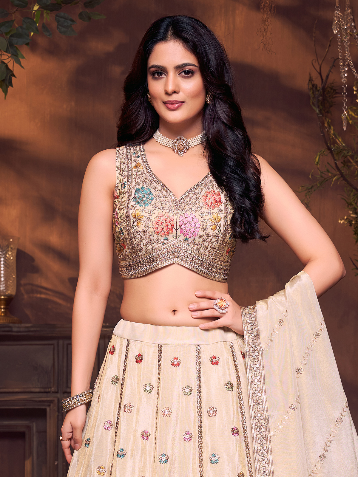 Cream Silk Sweetheart Embroidered Lehenga Choli
