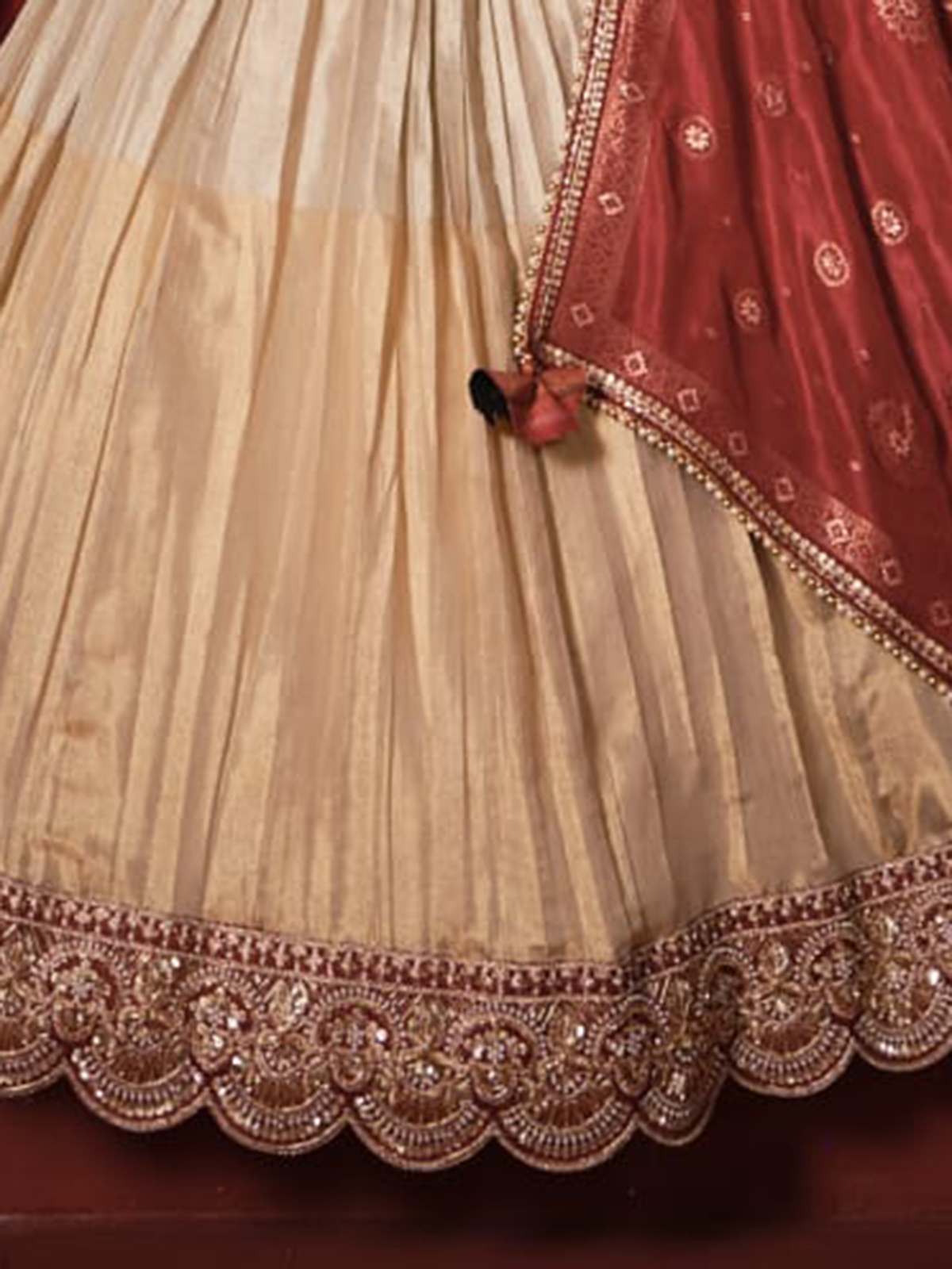 Cream Silk Zardosi Lehenga Choli For Wedding Wear