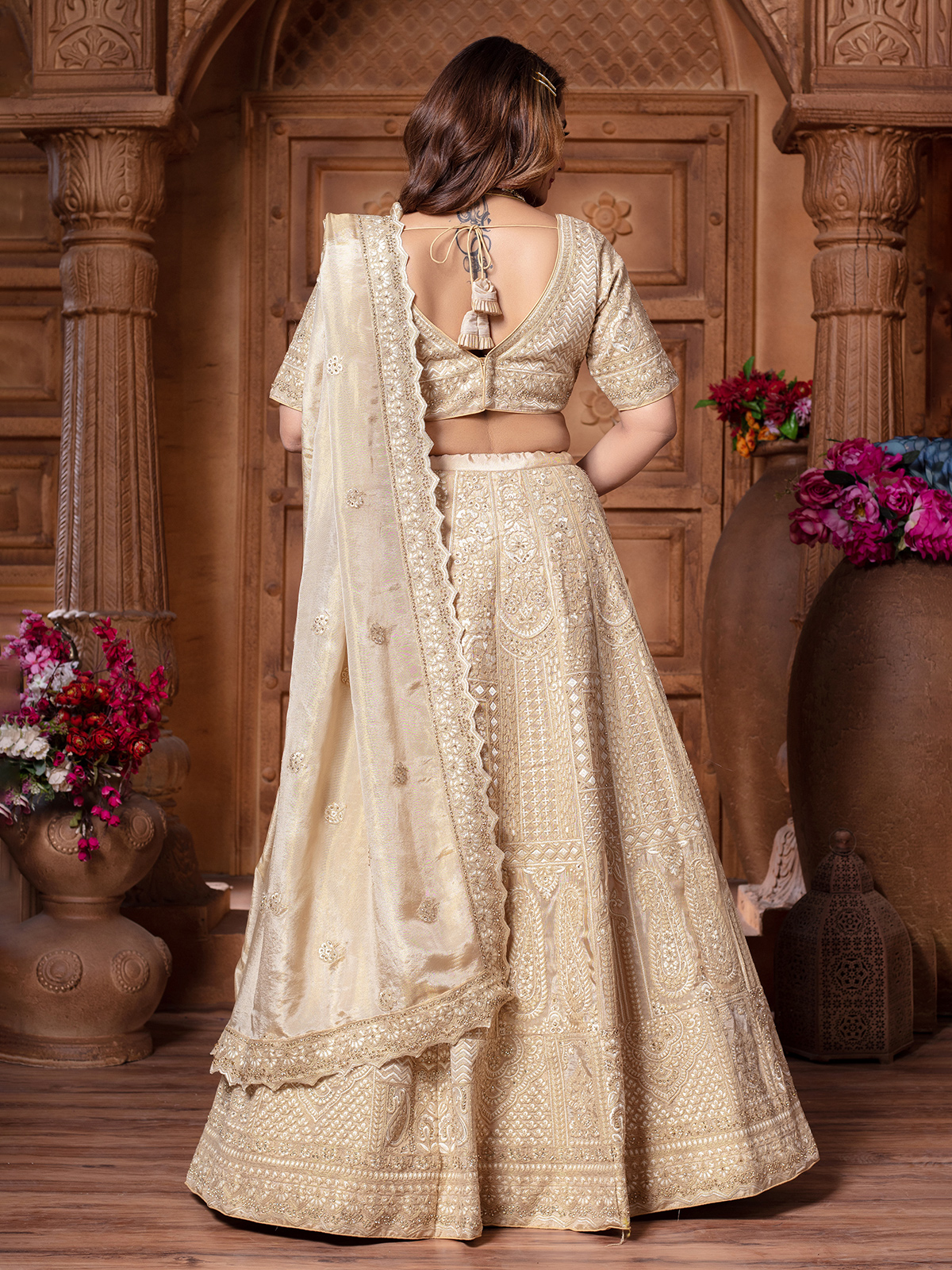 Cream Tissue Silk Lehenga Choli With Sparkling Diamond Work