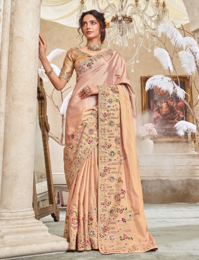 Reflecting timeless ethnic elegance, this dark brown silk lehenga choli is crafted with intricate detailing and classic charm. The sweetheart-neck choli with half sleeves is adorned with cutdana, sequins, beads, and mirror embellishments. Complemented by a richly patterned lehenga and an embellished dupatta, this ensemble is an excellent choice for wedding functions, receptions, and traditional festivities.