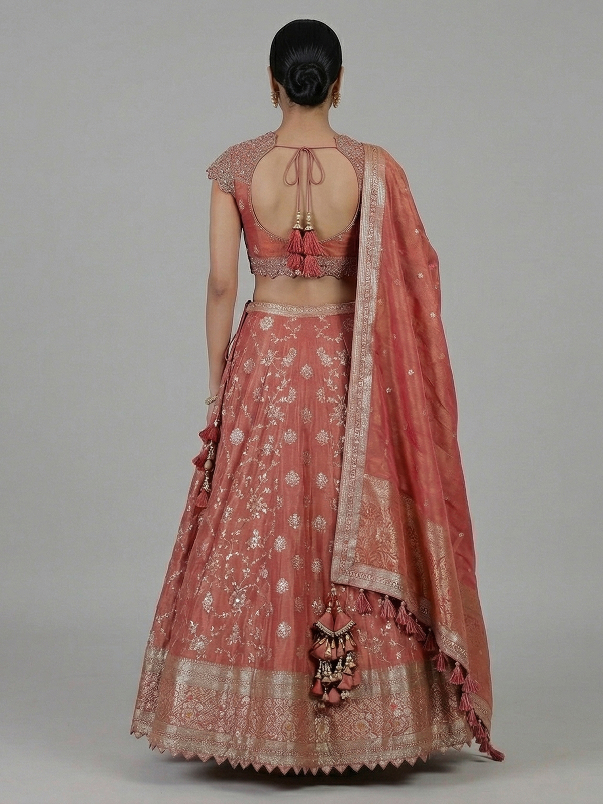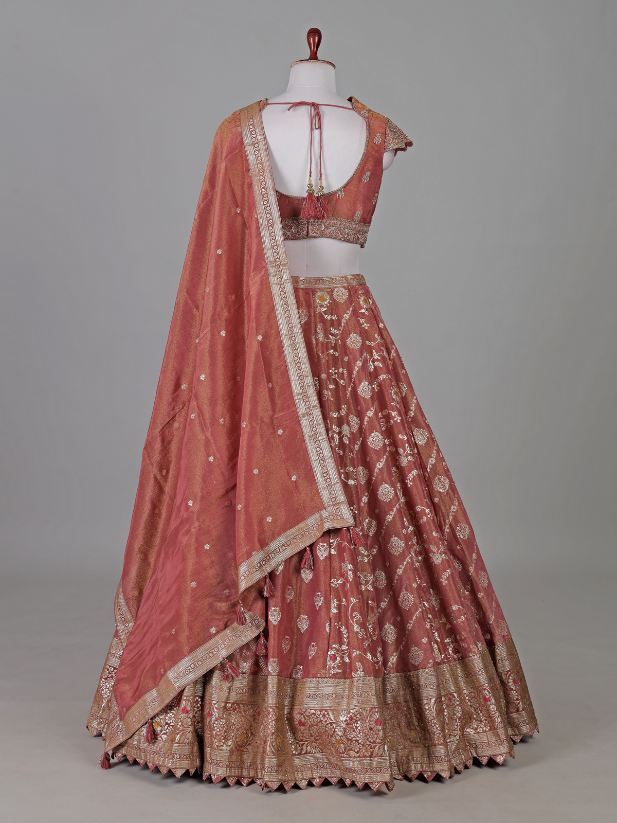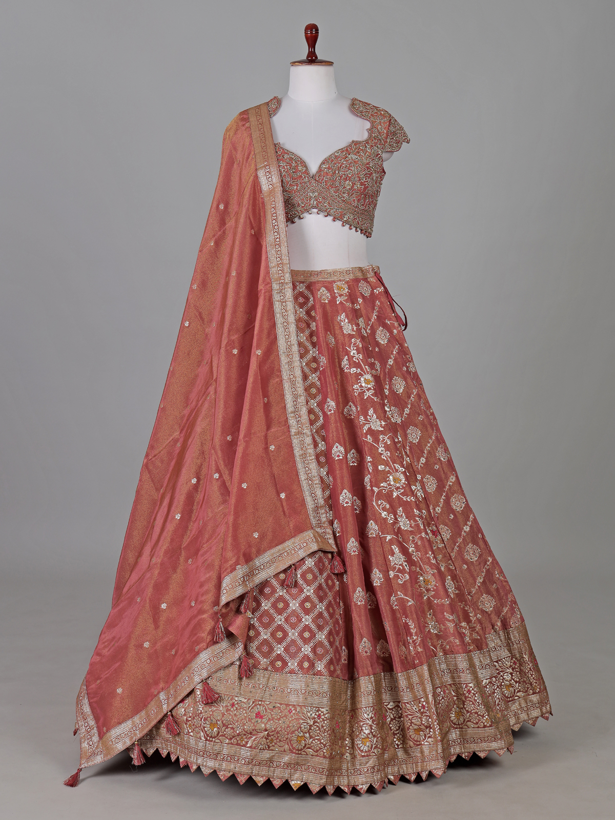 Dark Peach Banarasi Silk Zardosi Designer Lehenga Choli