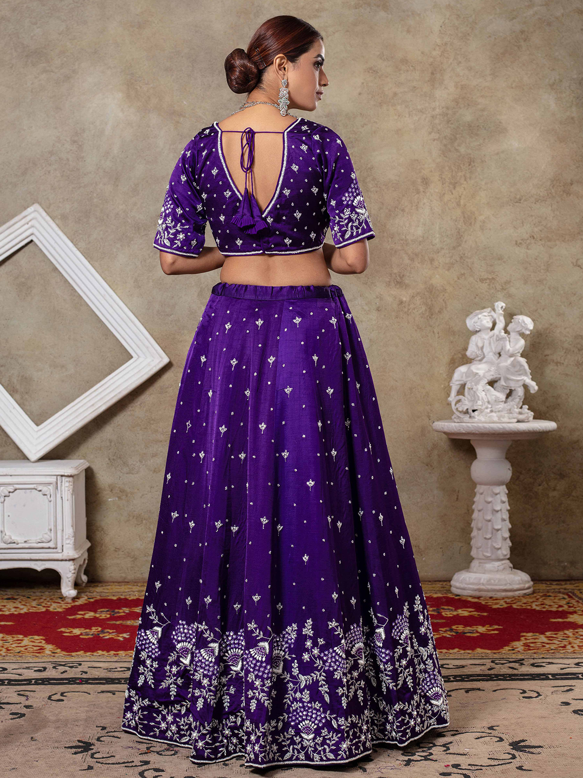 Dark Purple Raw Silk Bridal Lehenga Choli With Elegance