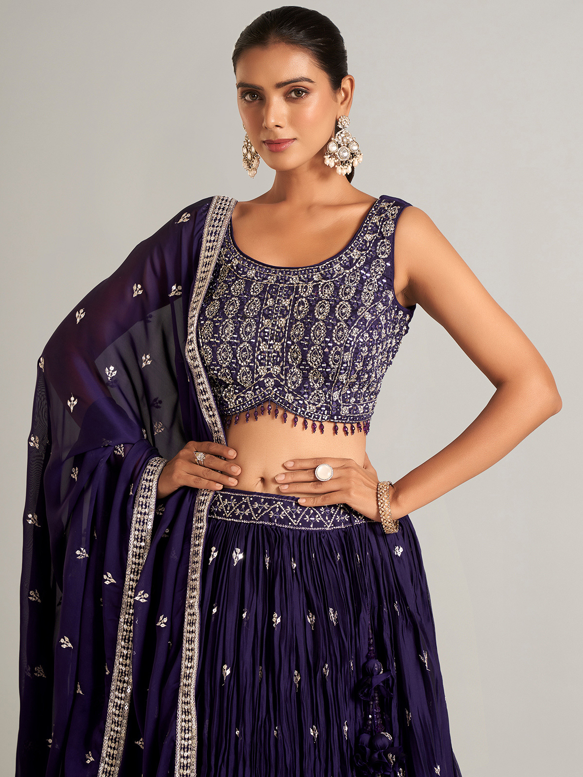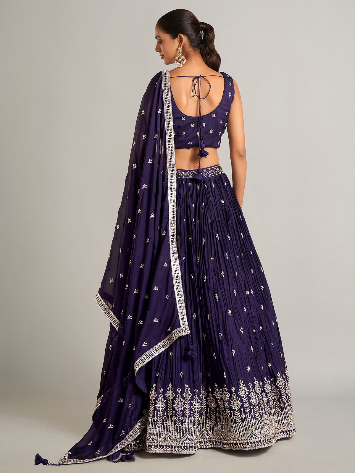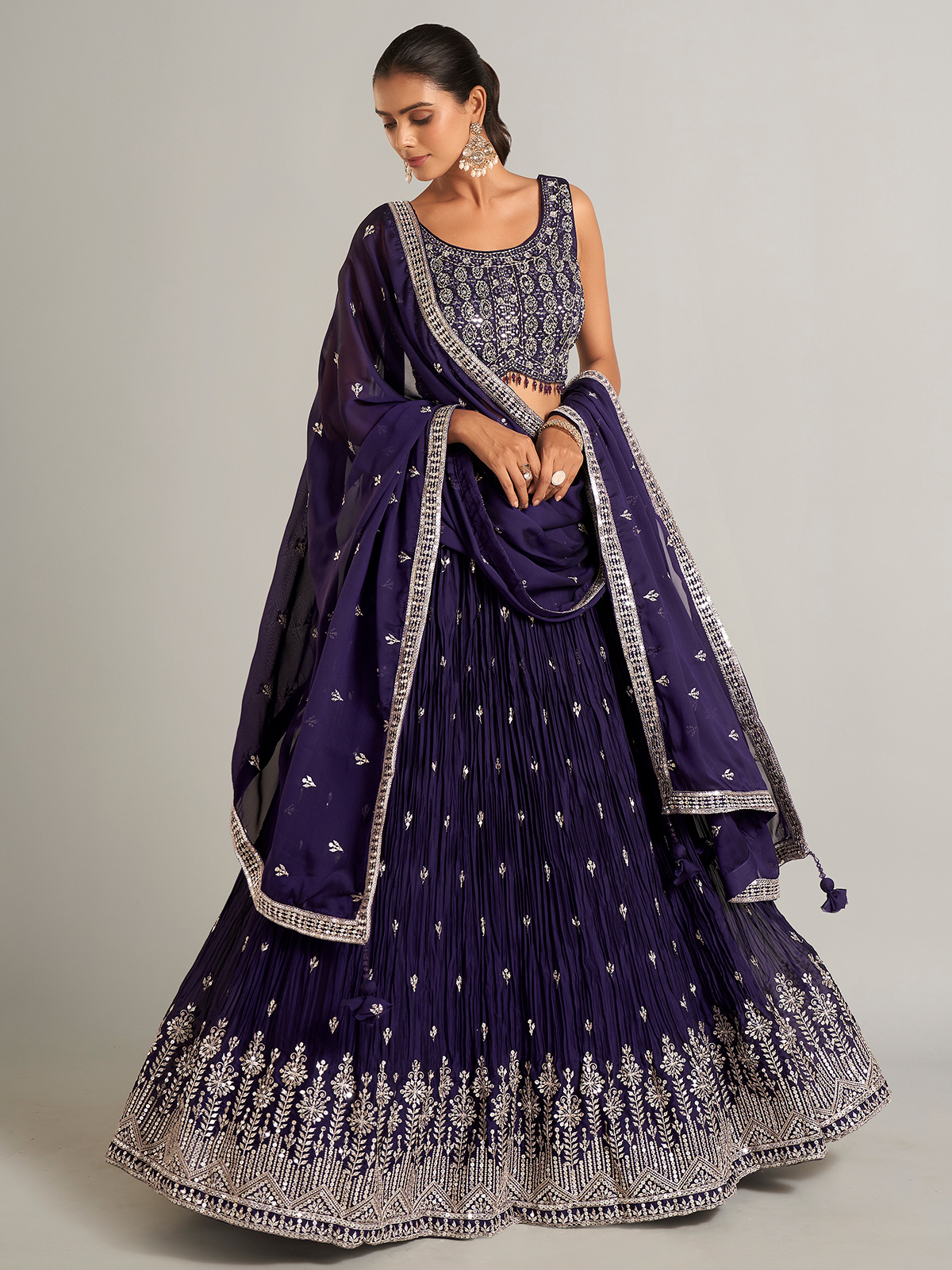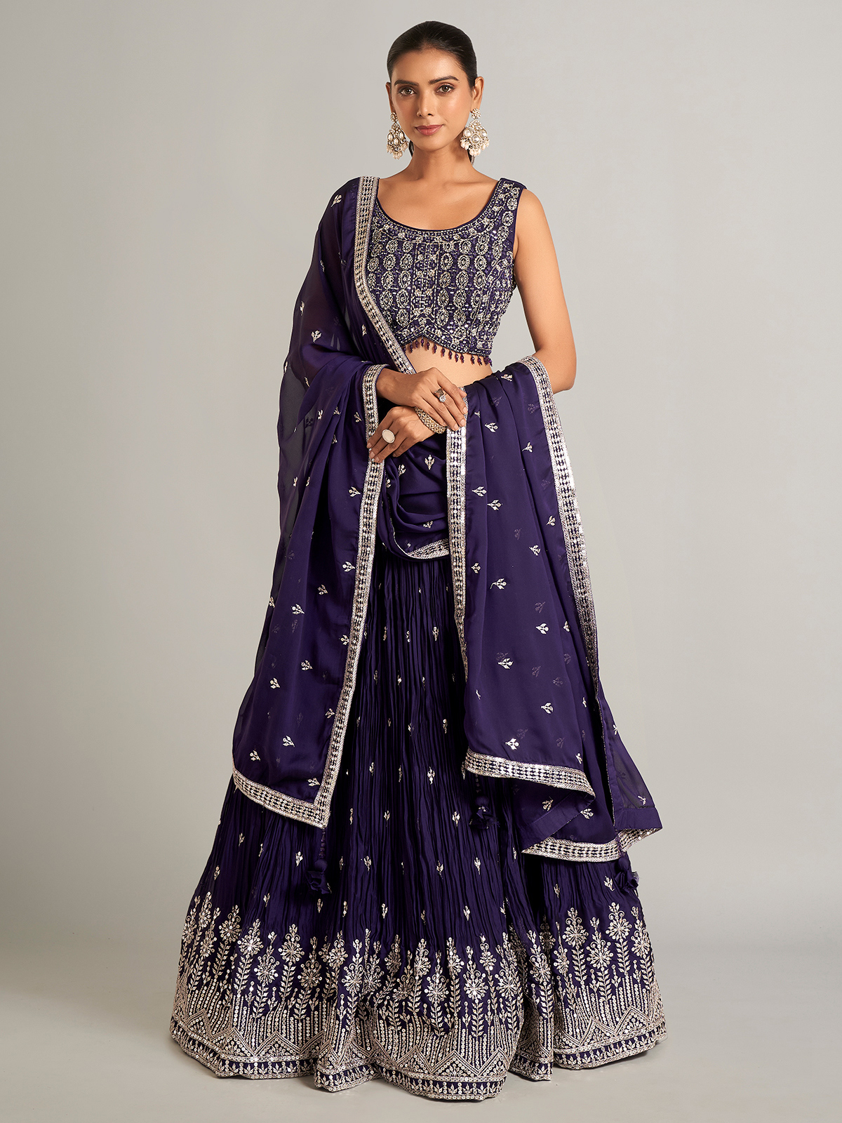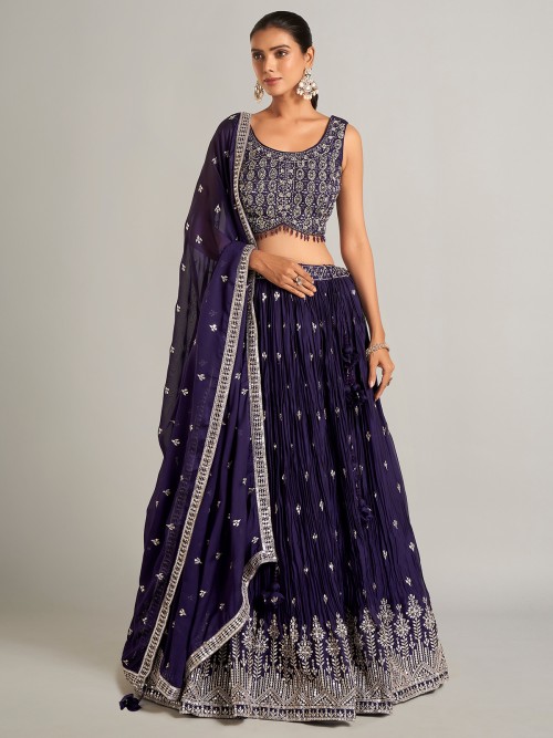Dark Purple Wedding Wear Lahenga Choli For Women