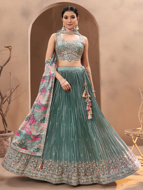 Elegant Mint Green Silk Lehenga Choli Set