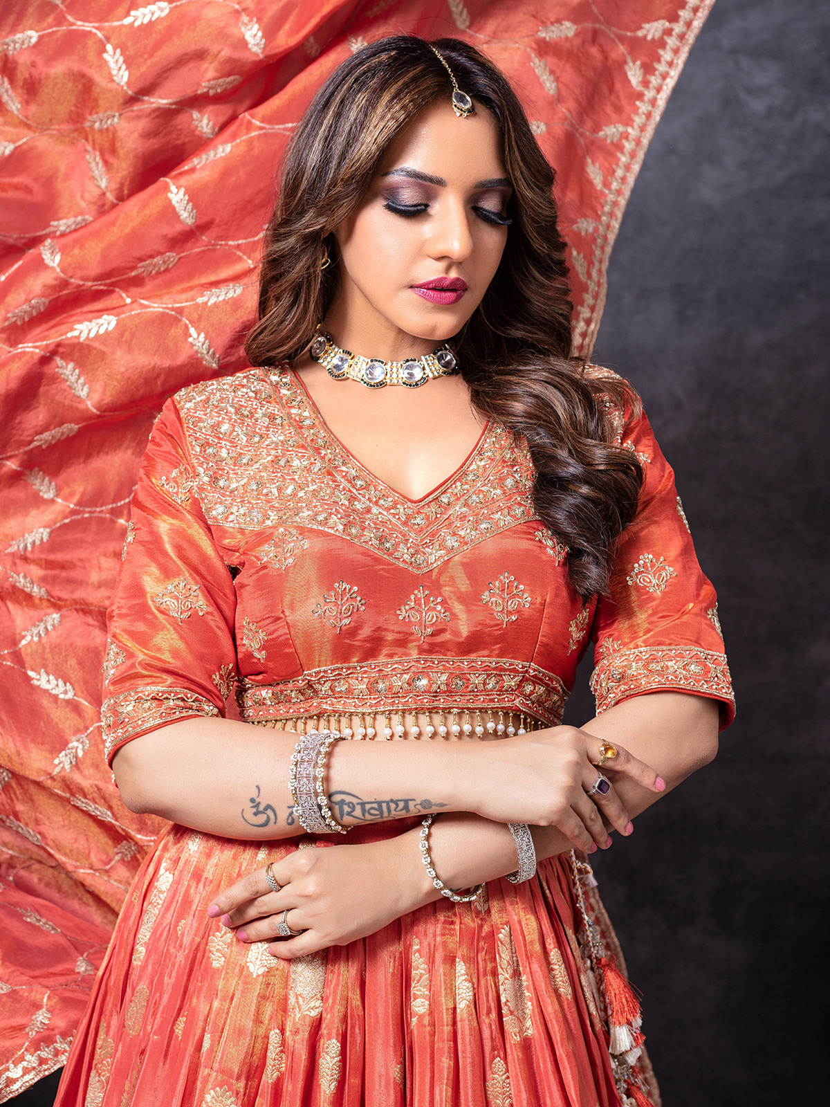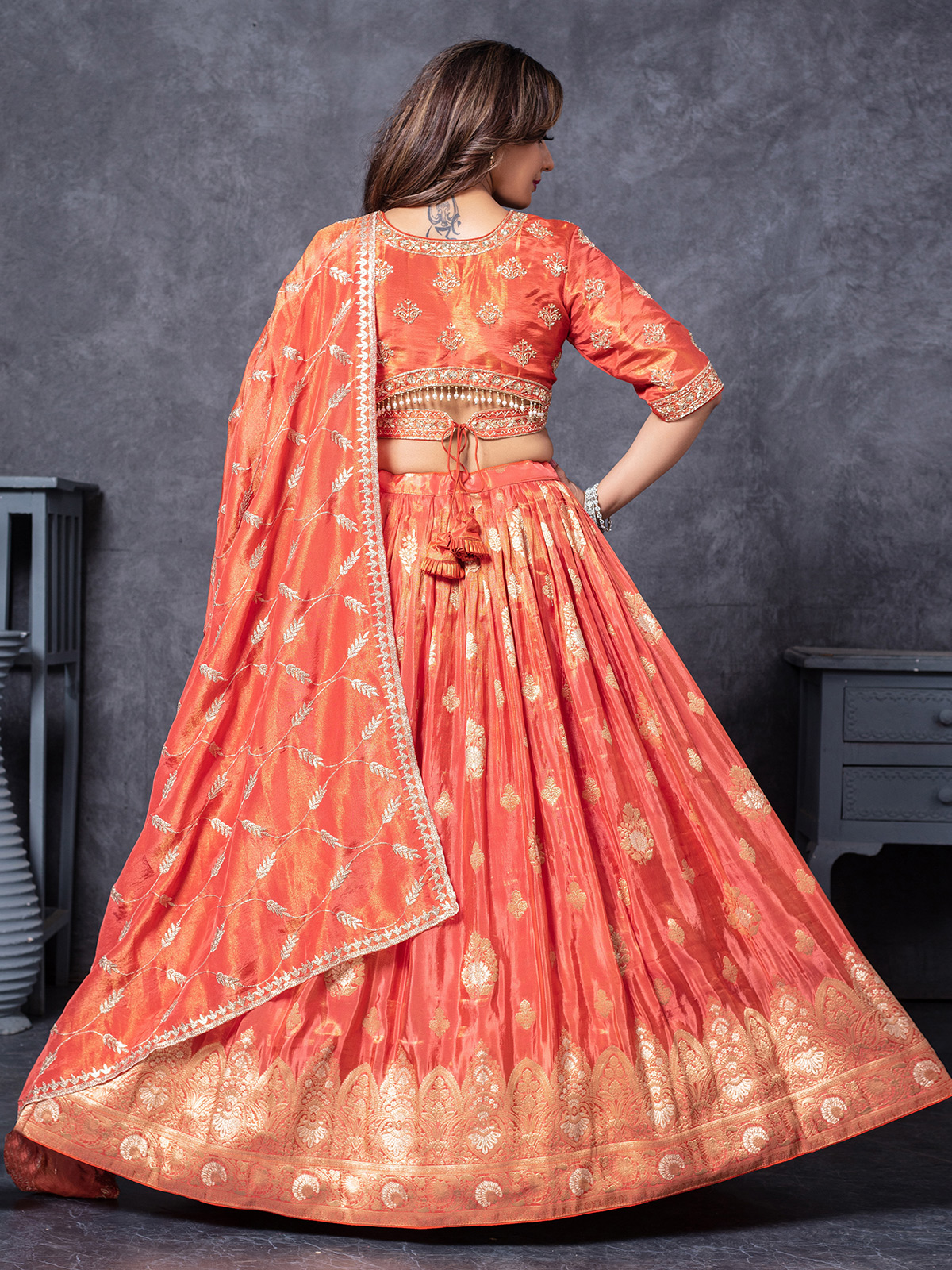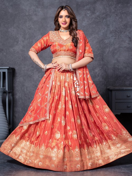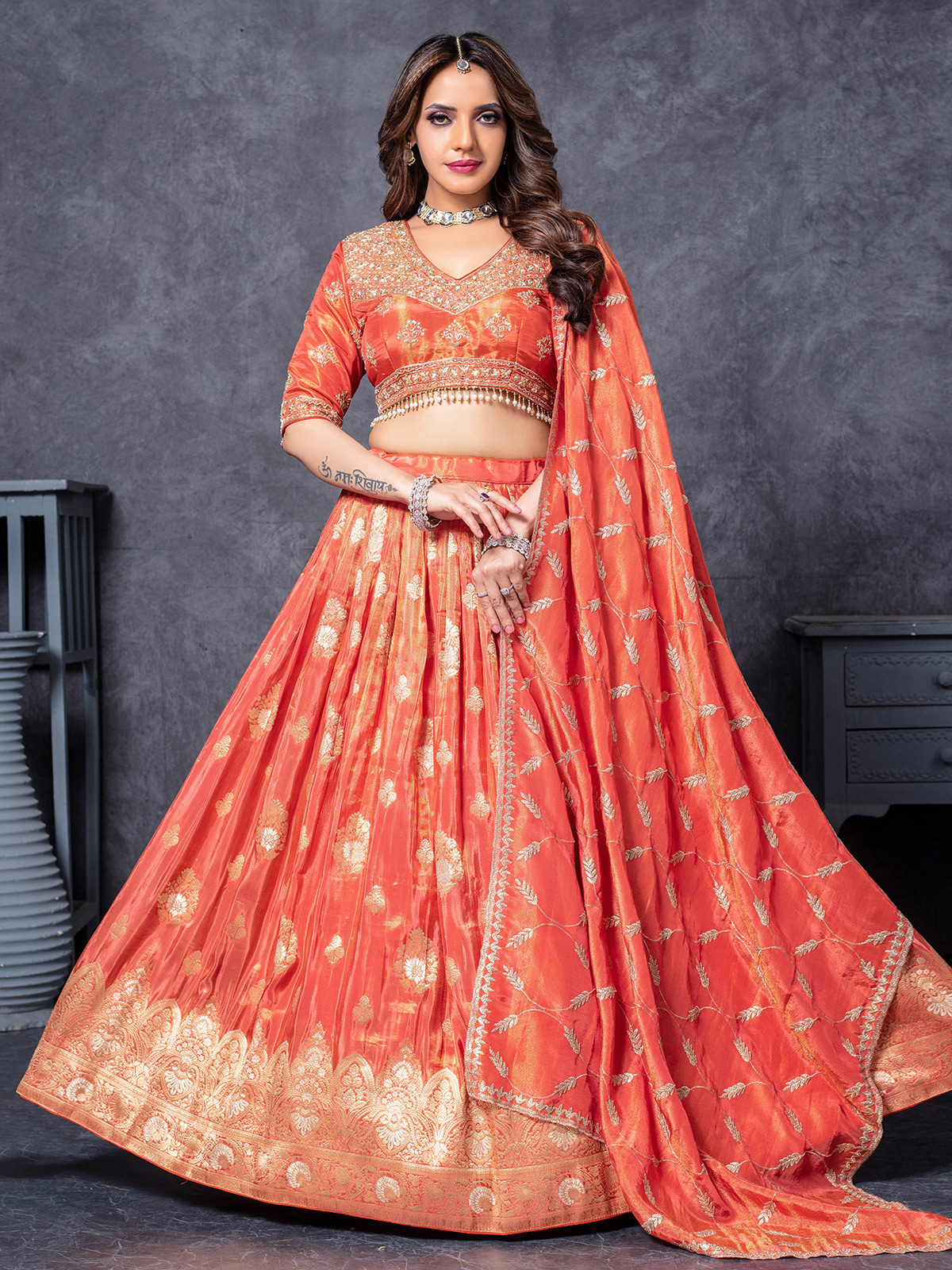Glam Orange Silk Lehenga Glimmering With Sequins