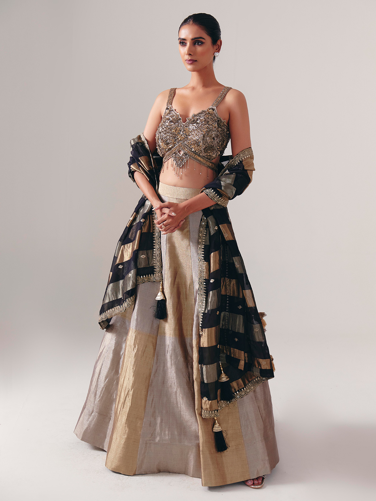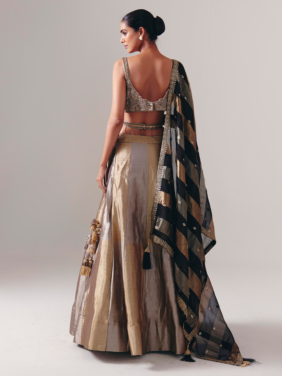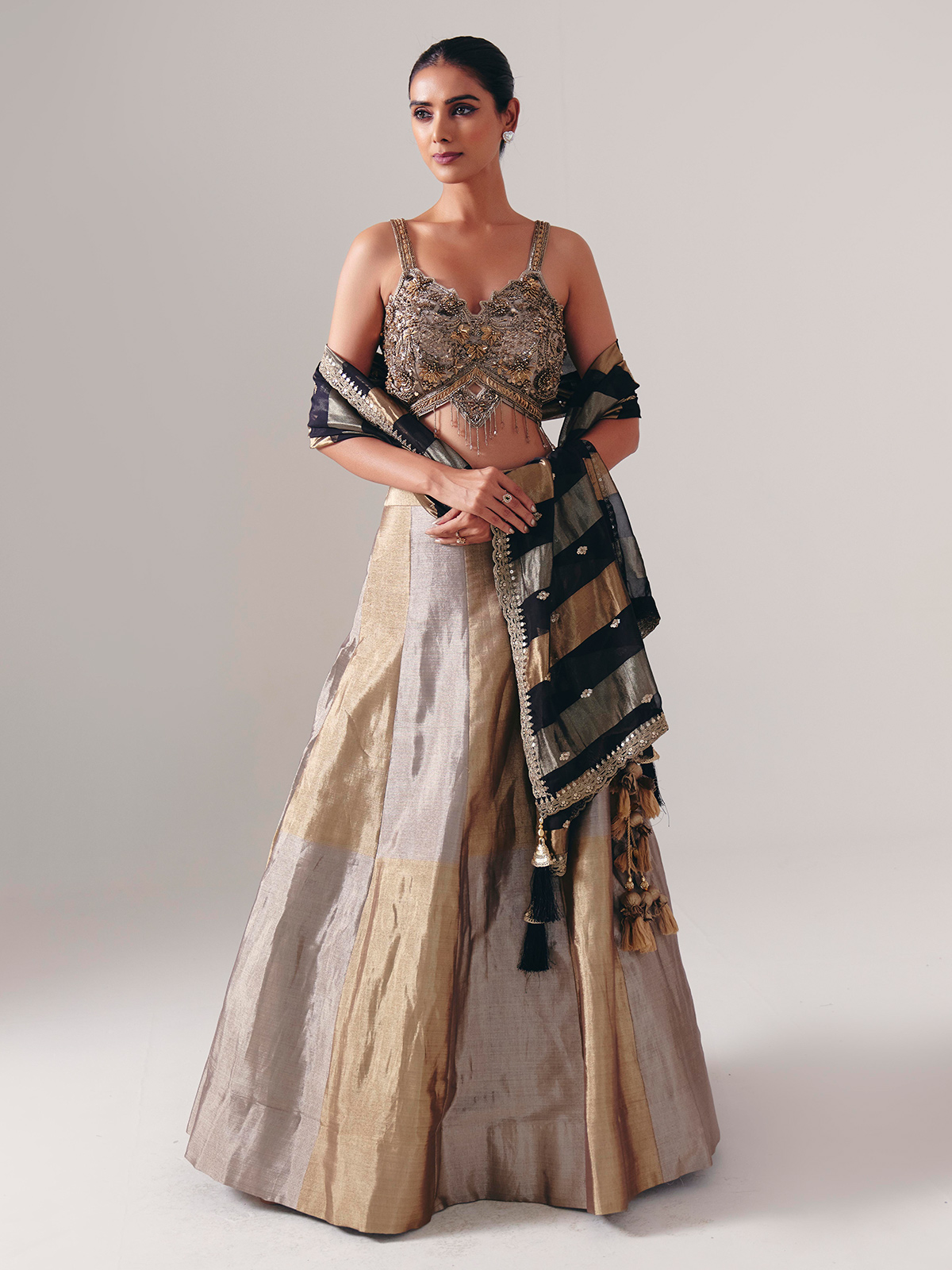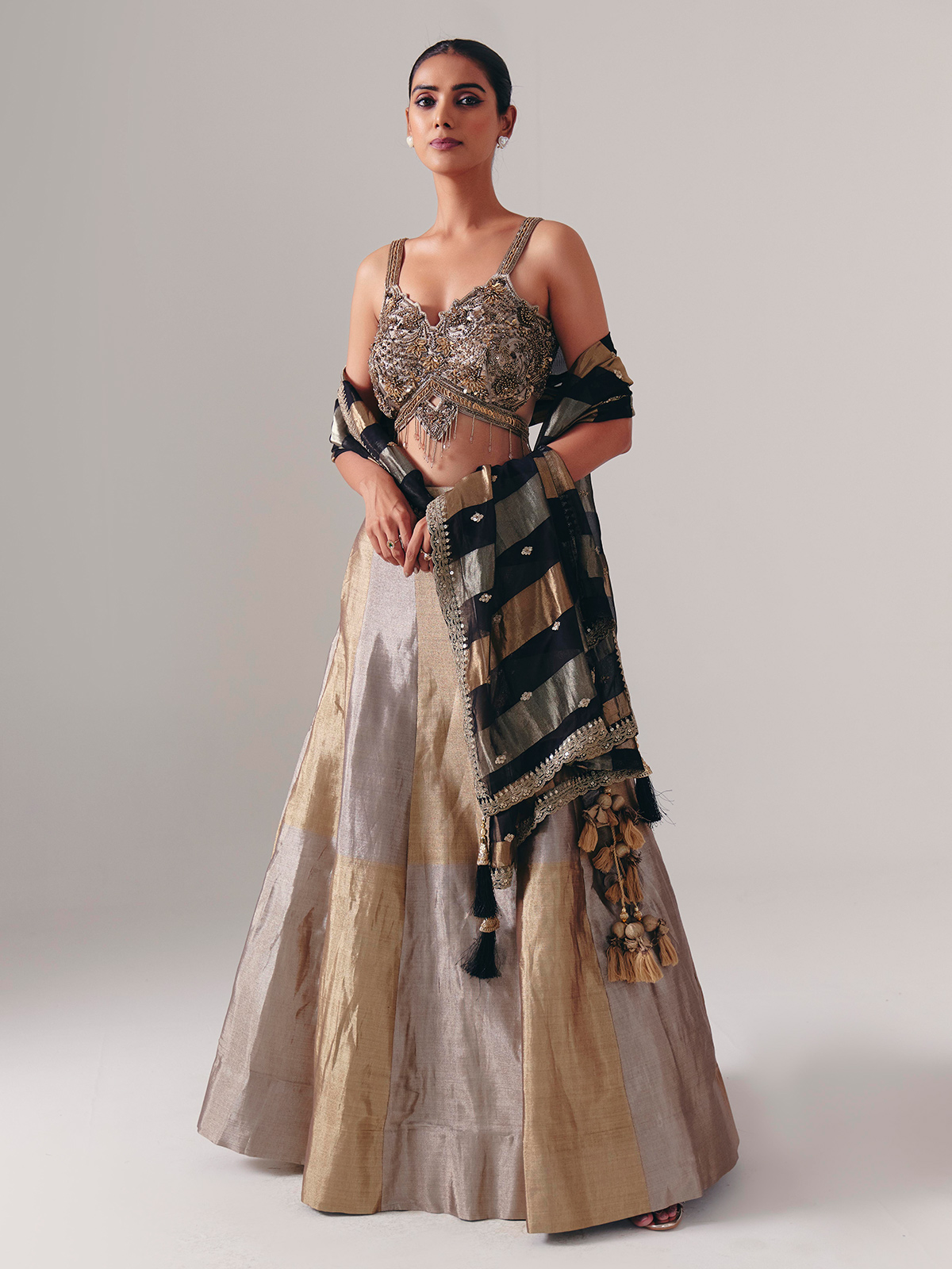 Gold And Silver Silk Lehenga Choli With Rich Embellished Choli