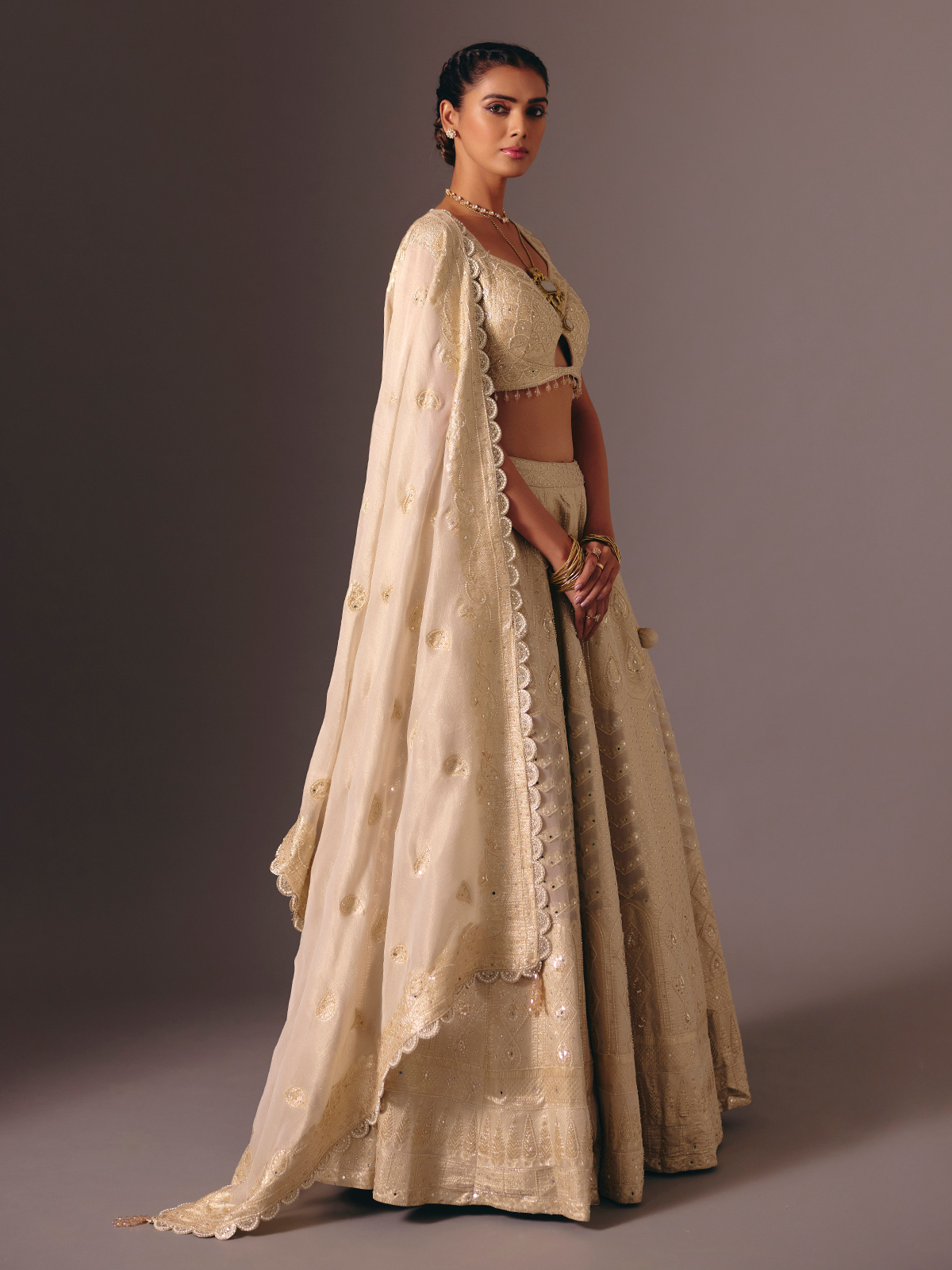Gold Banarasi Tissue Silk Bridal Lehenga Choli With Mirror Detailing