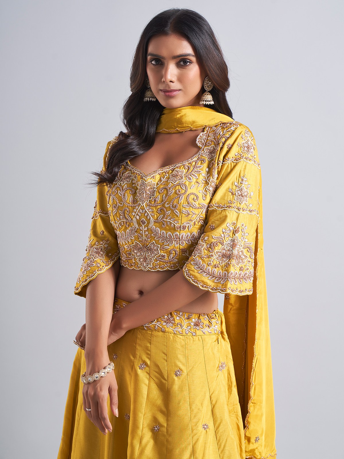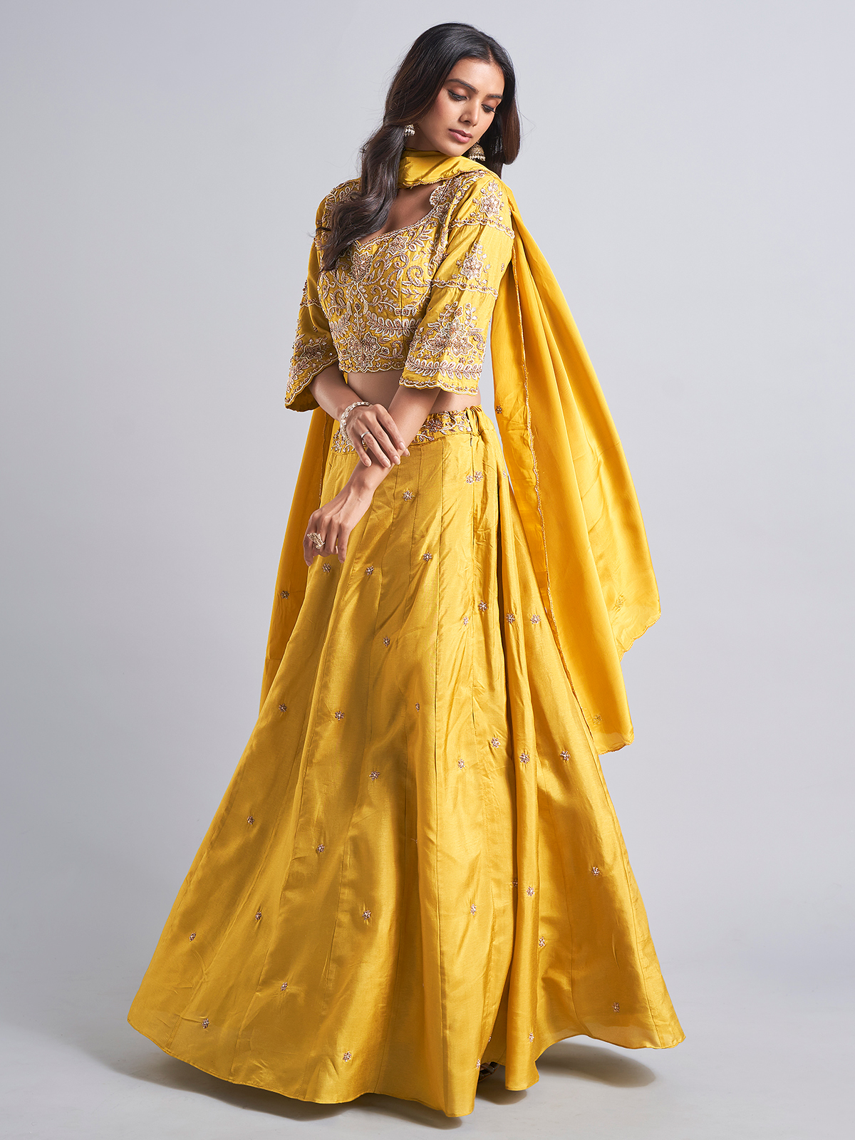 Gorgeous Mustard Yellow Silk Lehenga Choli