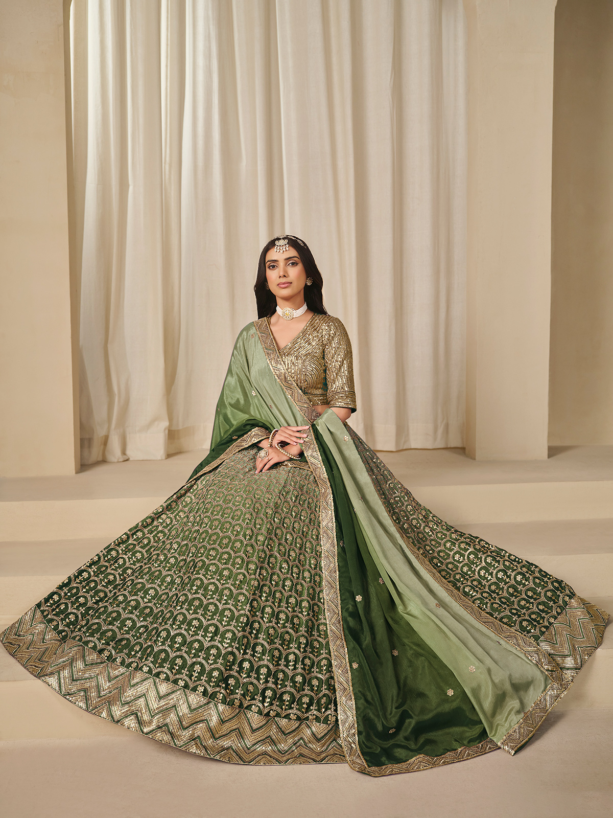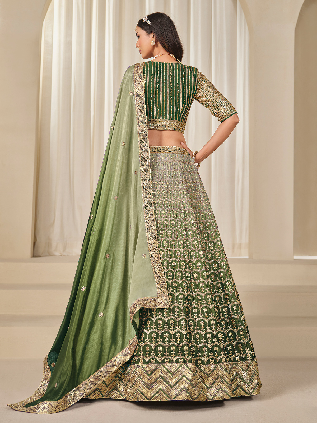 Green Silk Lehenga Choli Adorned With Sequins Work
