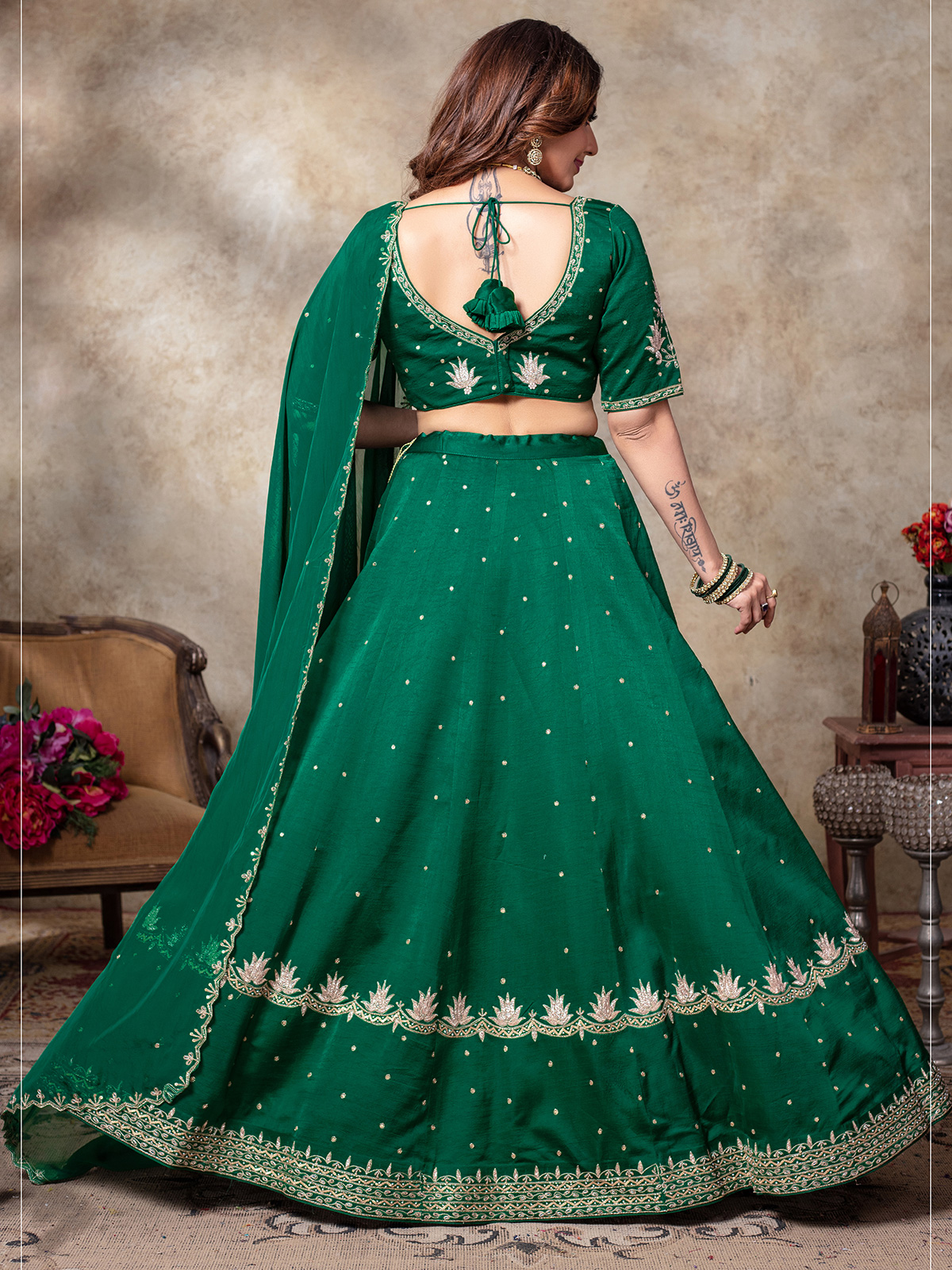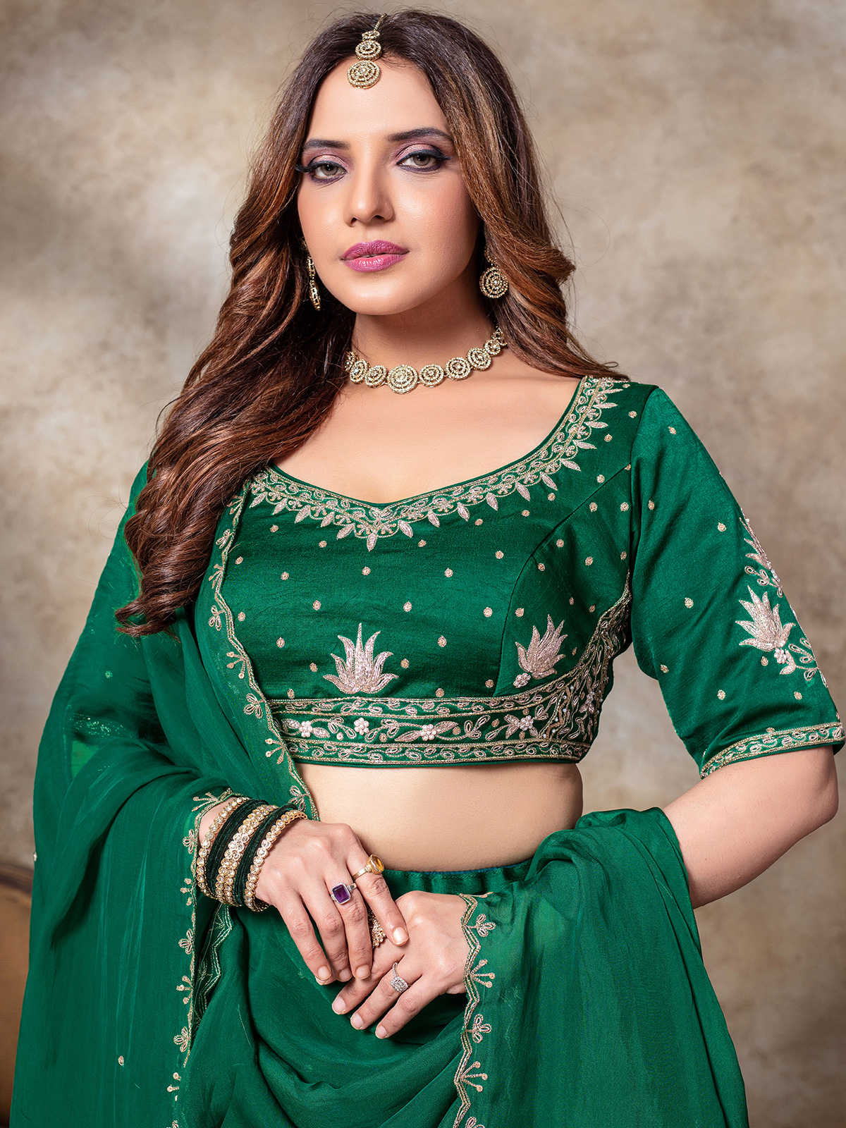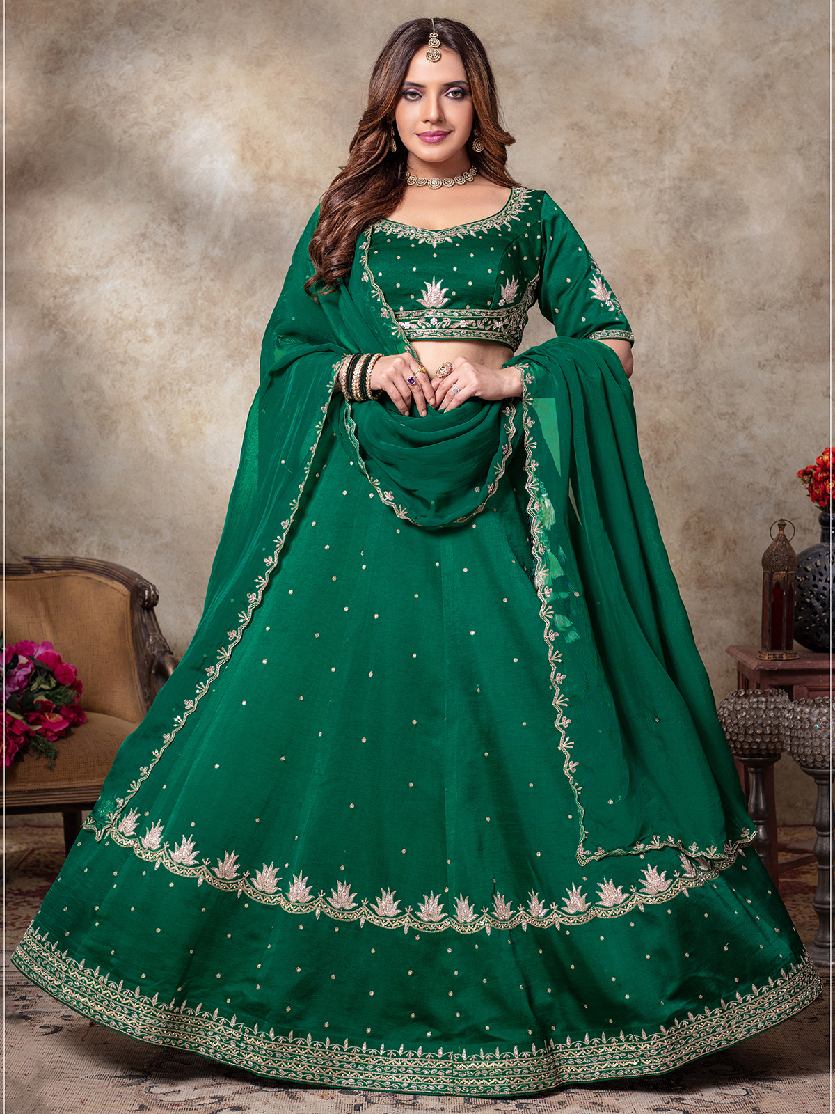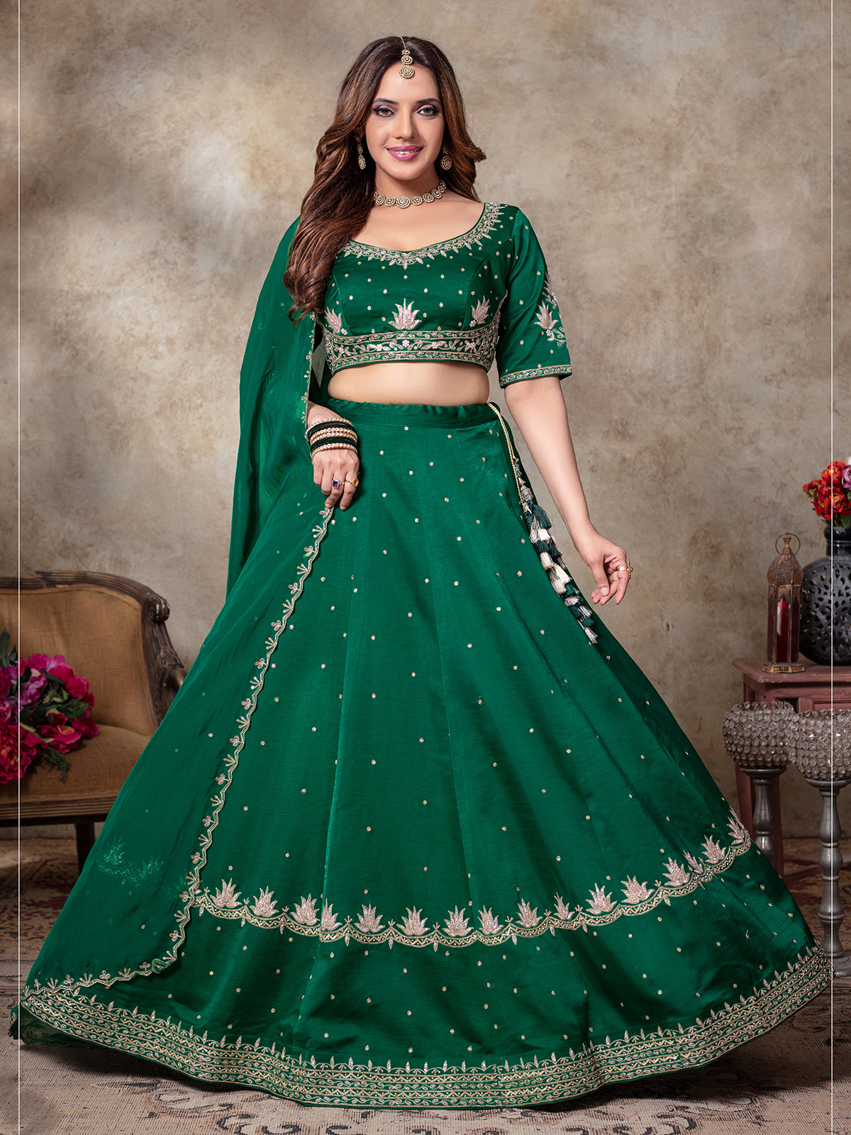 Green Silk Lehenga Choli For Women