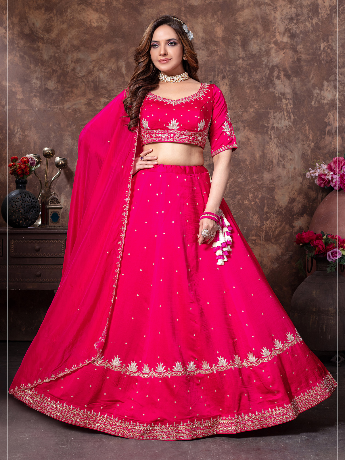 Latest Wedding Style Silk Rani Pink Lehenga Choli