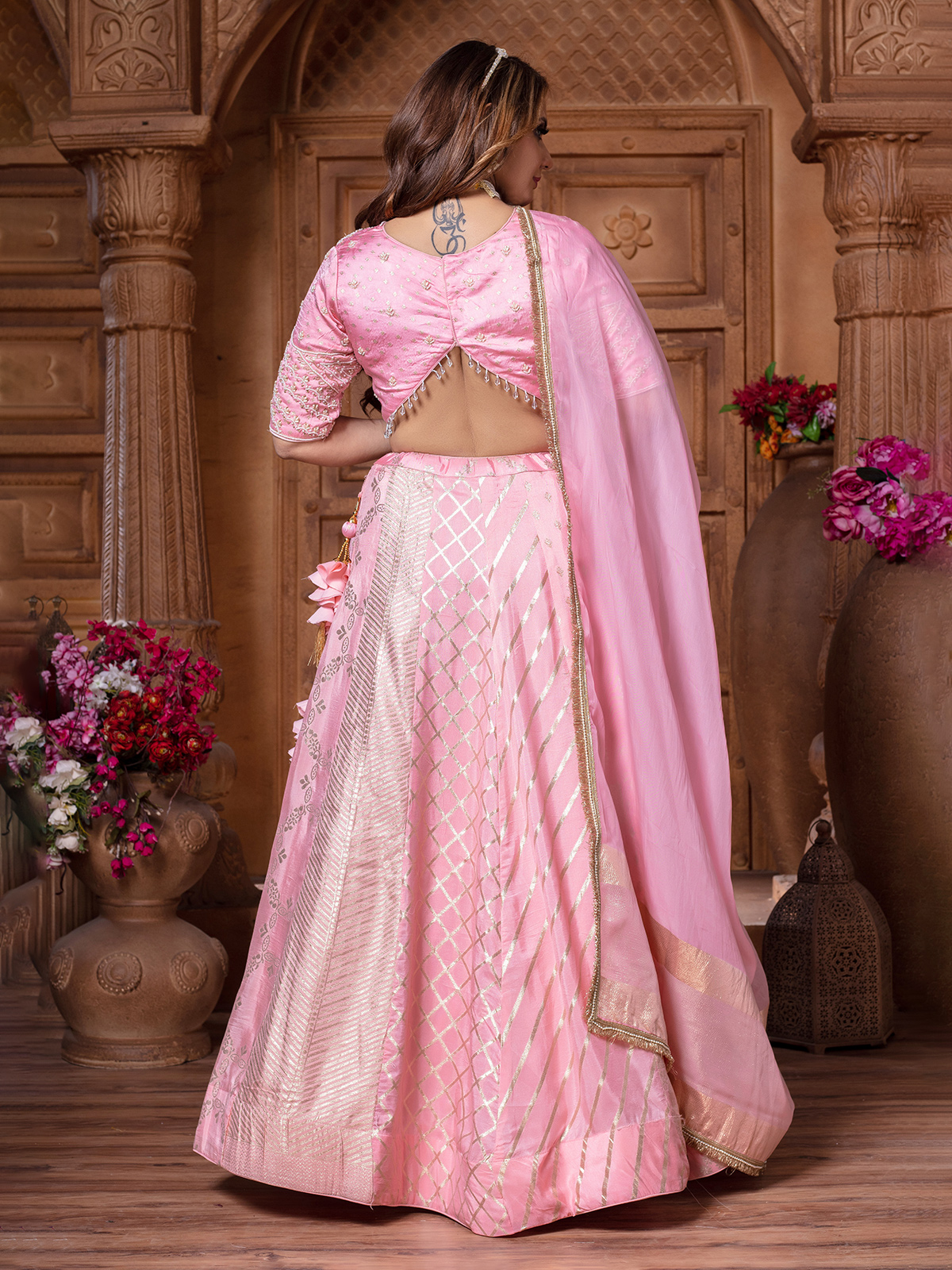 Light Pink Tissue Silk Lehenga Choli With Graceful Dupatta
