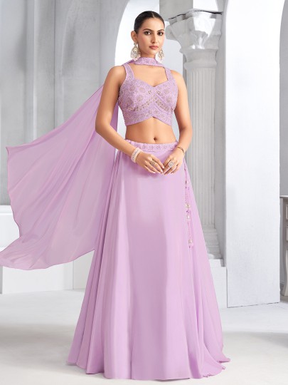Light Purple Crepe Silk Lehenga Choli With Choker Dupatta