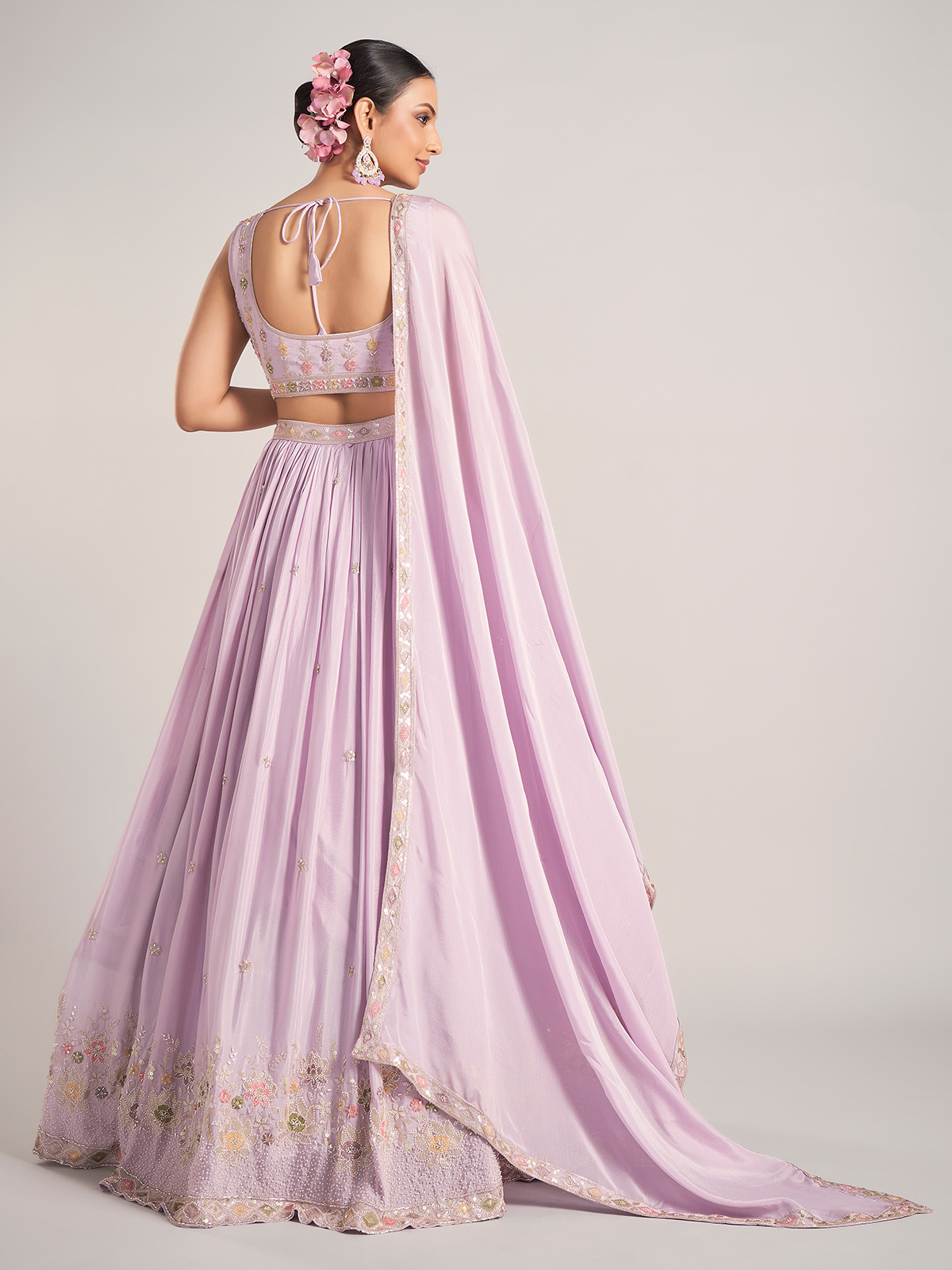 Lilac Purple Wedding Wear Silk Lehenga Choli